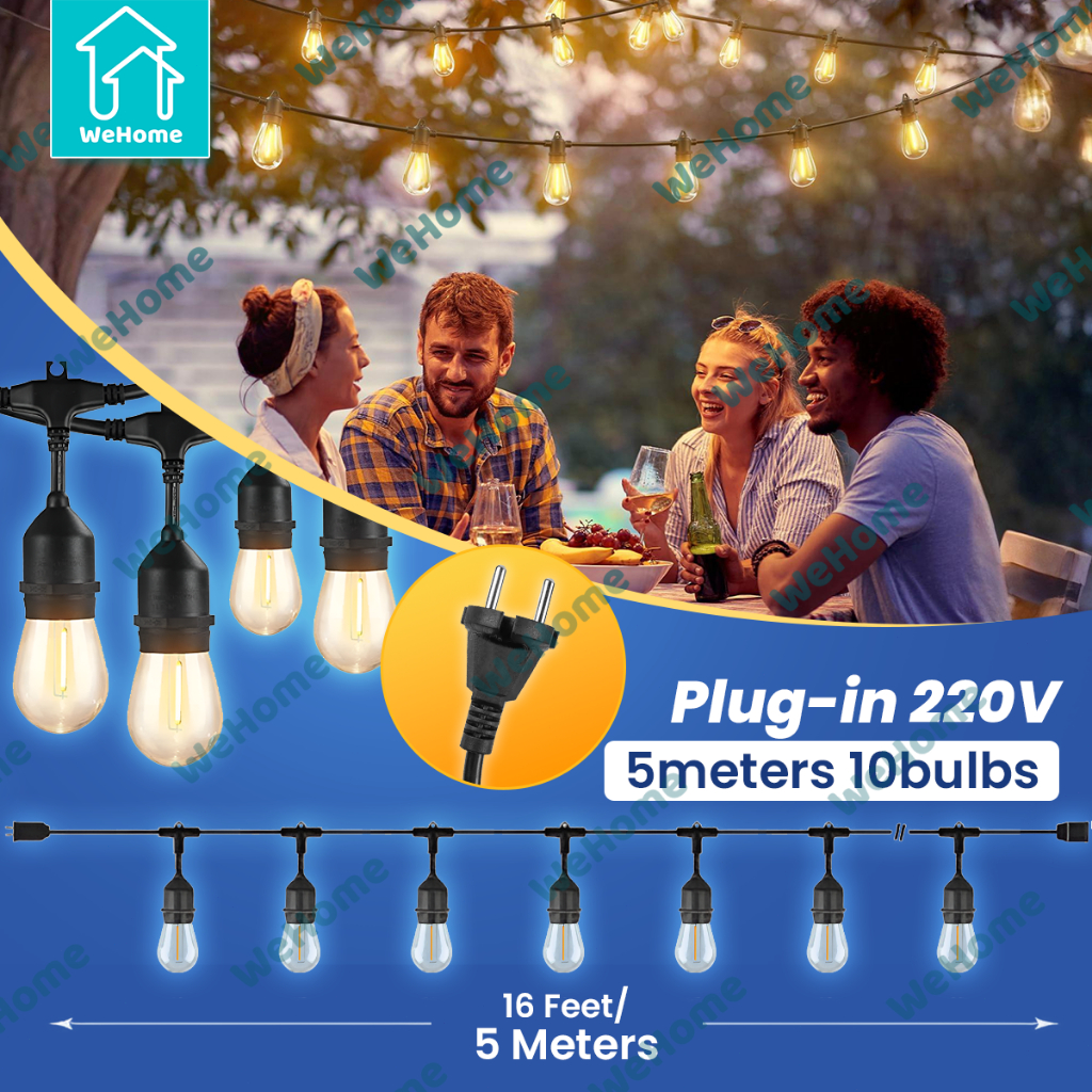 WeHome Solar/220V Led String lights S14 Bulb Waterproof Indoor/Outdoor Patio Fairy Party Light
