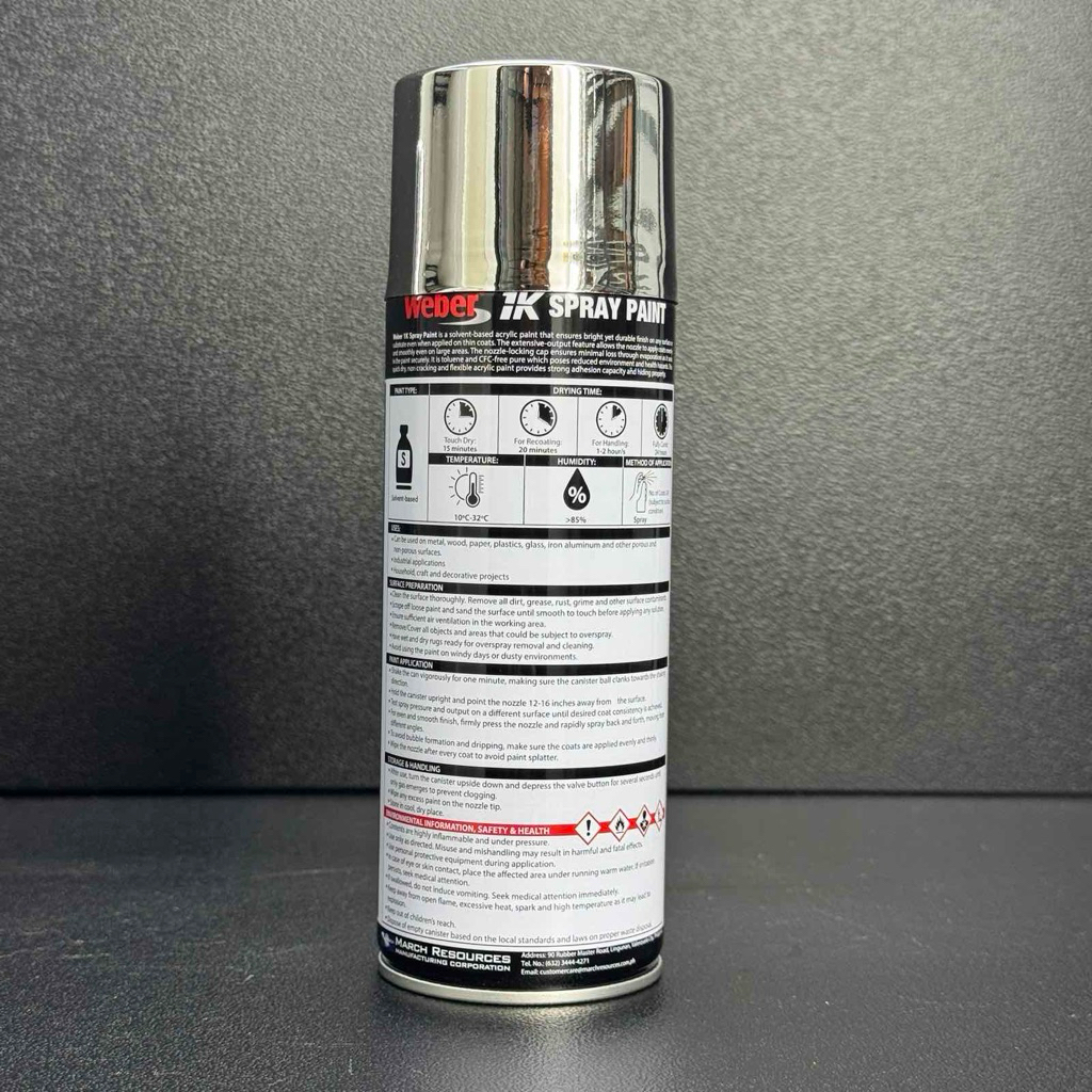 Weber Auto 1k Spray Paint (318 Bright Chrome) 100% Pure Acrylic Fast Drying