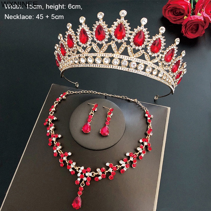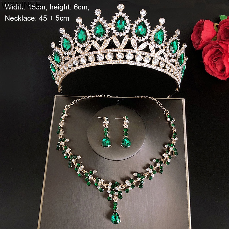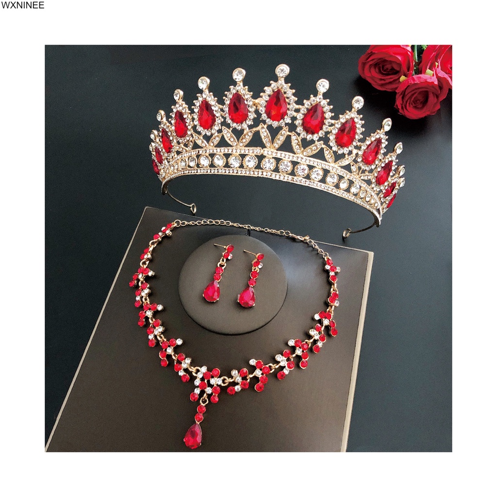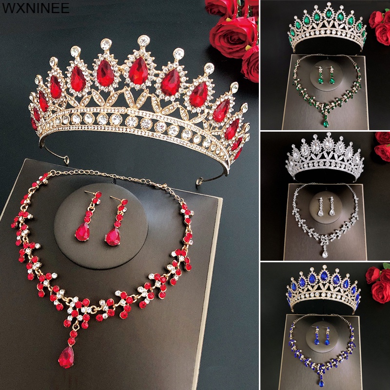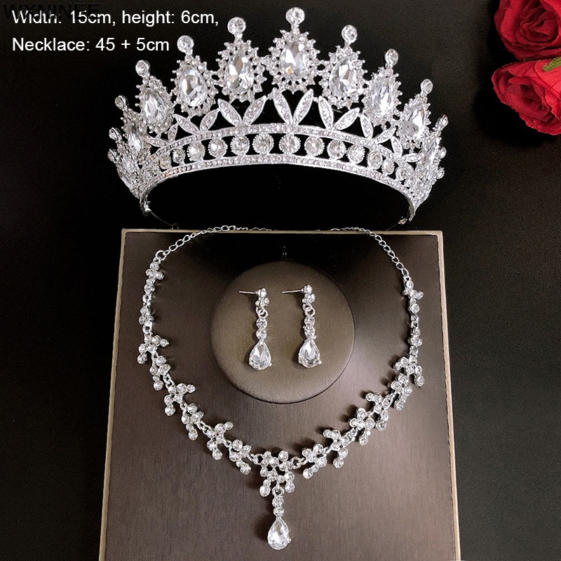 Wedding Bridal Tiaras Crown Set with Earring Kit & Necklack Handmade Luxury Crystal Hair Accessories for Party Prom