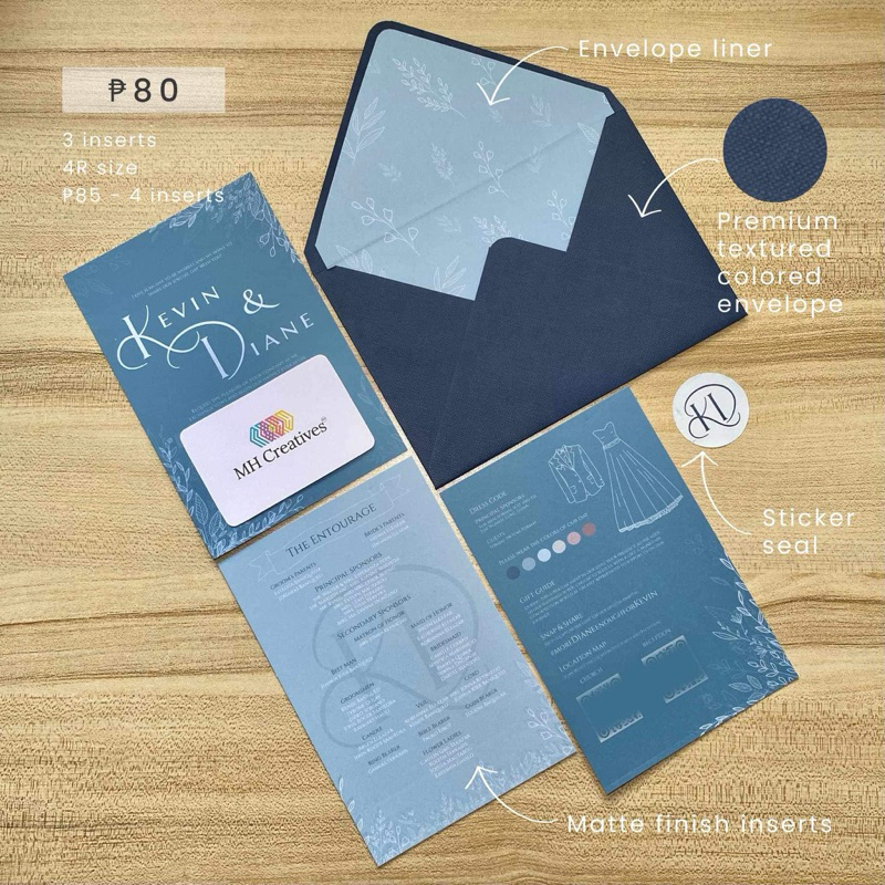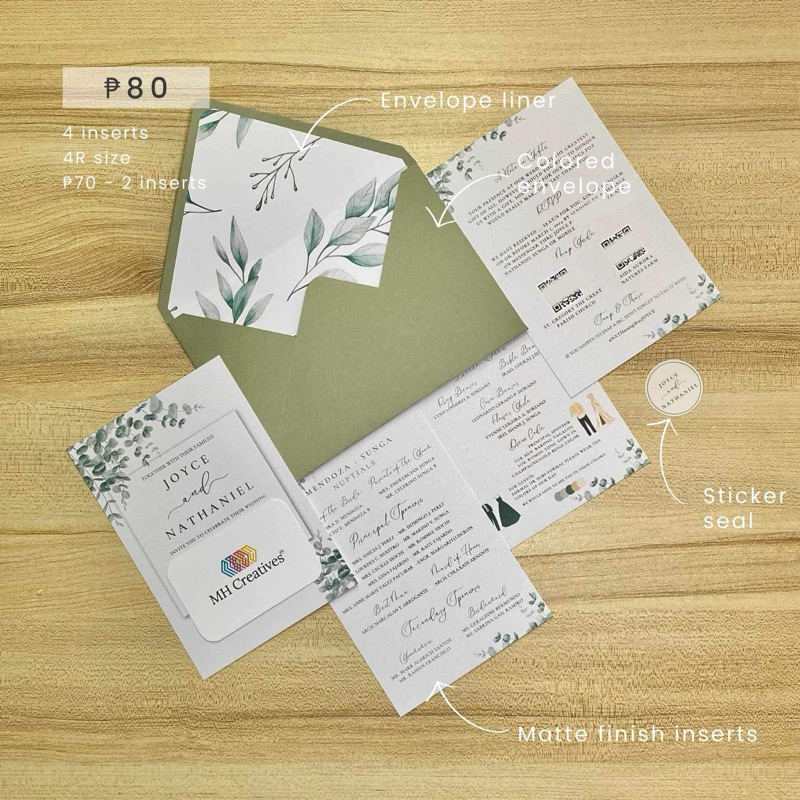 Wedding Invitation Set WITH LINER (Inserts, envelope with liner & seal)