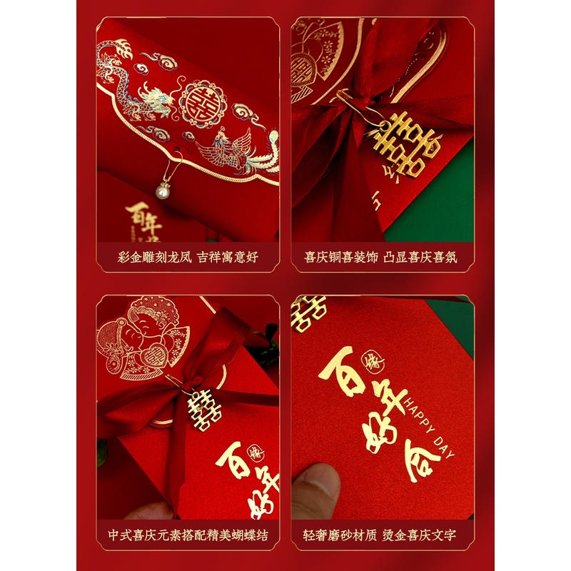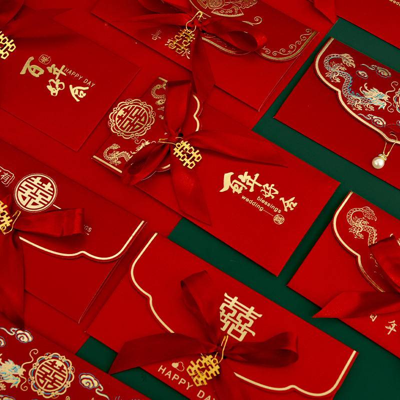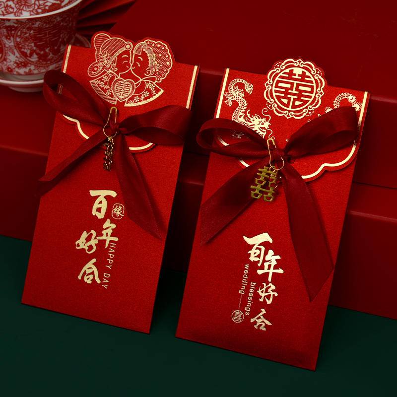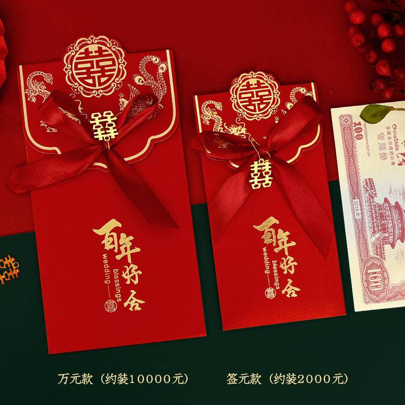 Wedding Red Packet Wedding Angpao Packet 2022 Angpow Pouch Angpau Money Envelope Bag Cute Bow Long Large Big XL Hadiah Kahwin Gift Xi Chinese Style High End Creative Special
