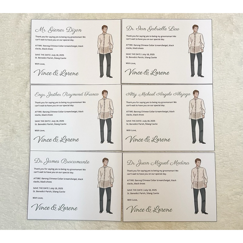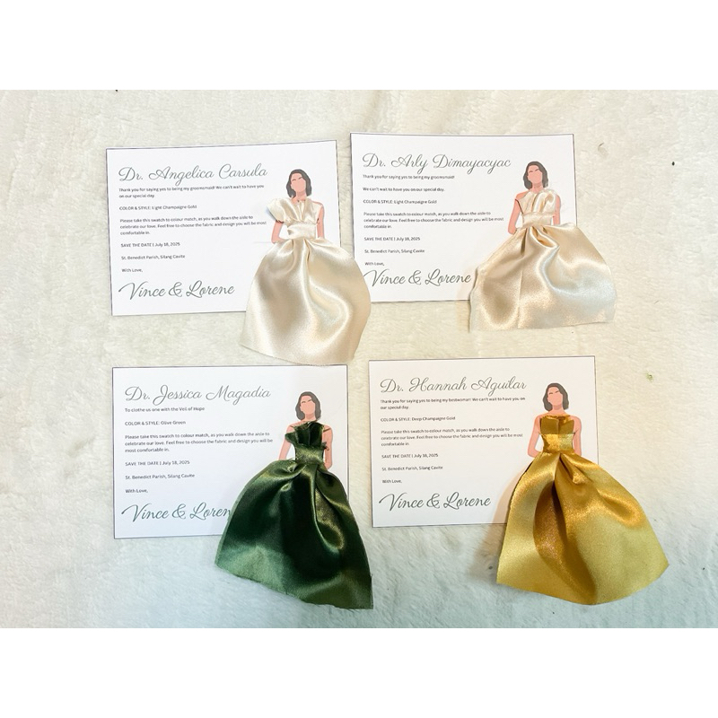 Wedding Swatch Cards for Ninang Ninong Bridesmaid Groomsmen