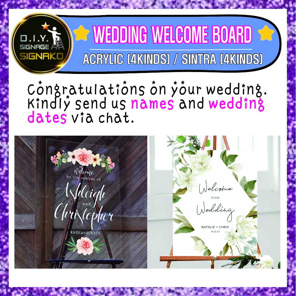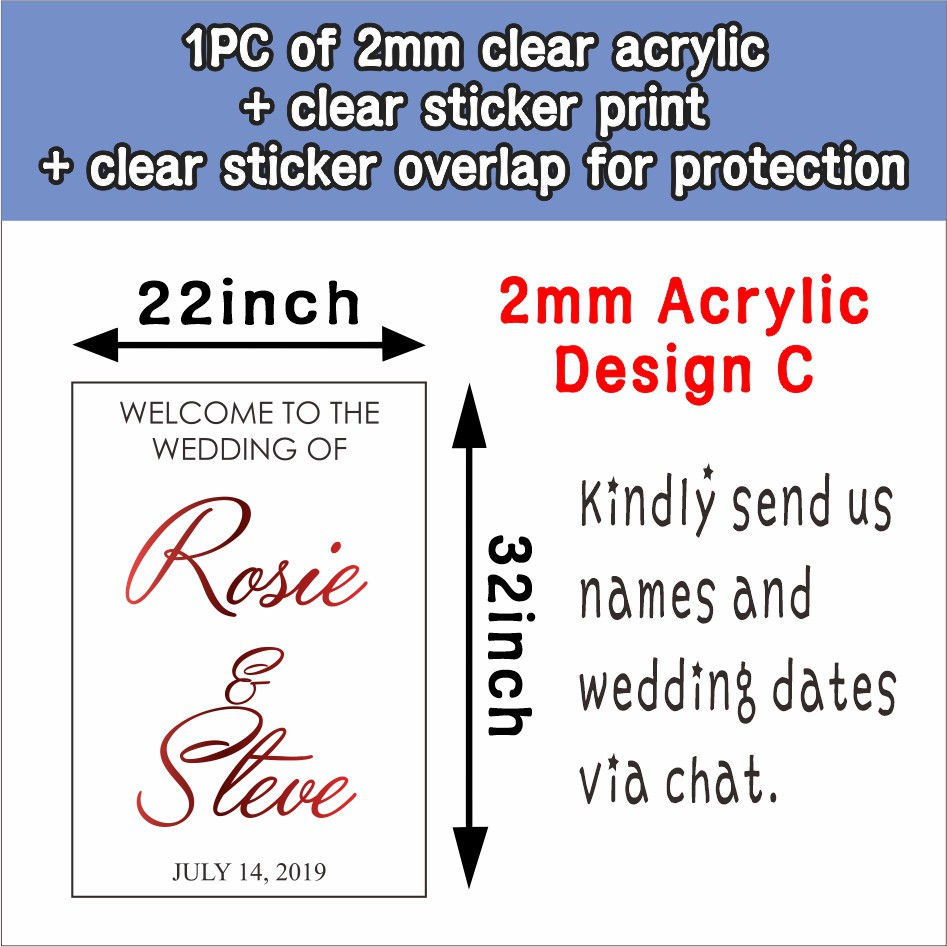 Wedding Welcome Board / 22x32 inch Acrylic Sintra Sticker / Clear Transparent Sign Signage for Easel