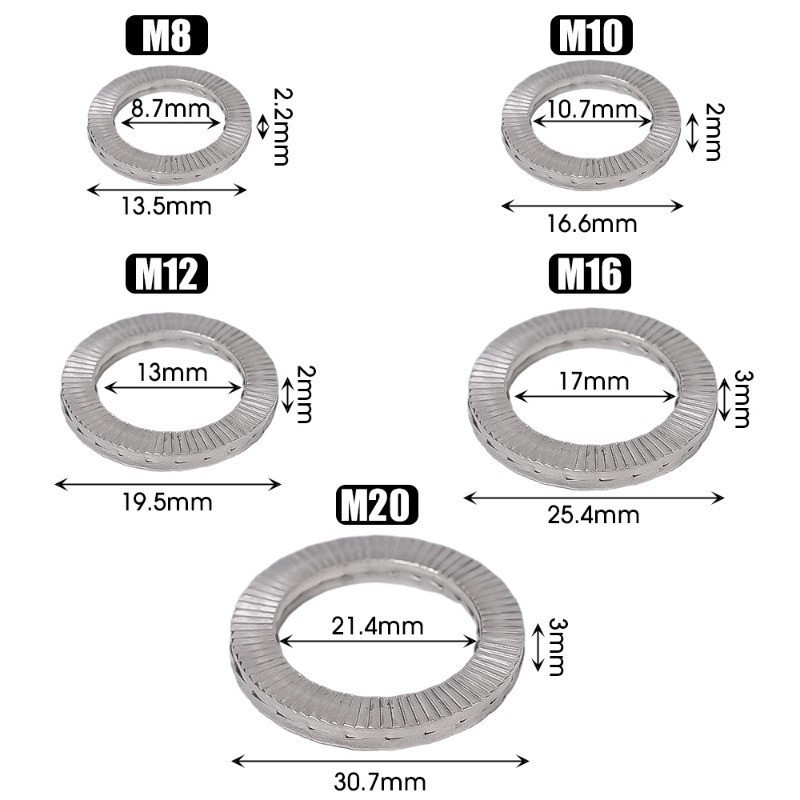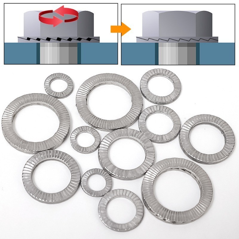 Wedge Lock Washers - 304 Stainless Steel Gasket - M8 M10 M12 M16 M20 Washer - Dacromet Gasket - Anti-loosening Self-locking - Double Stack toothed - Replacement Accessories