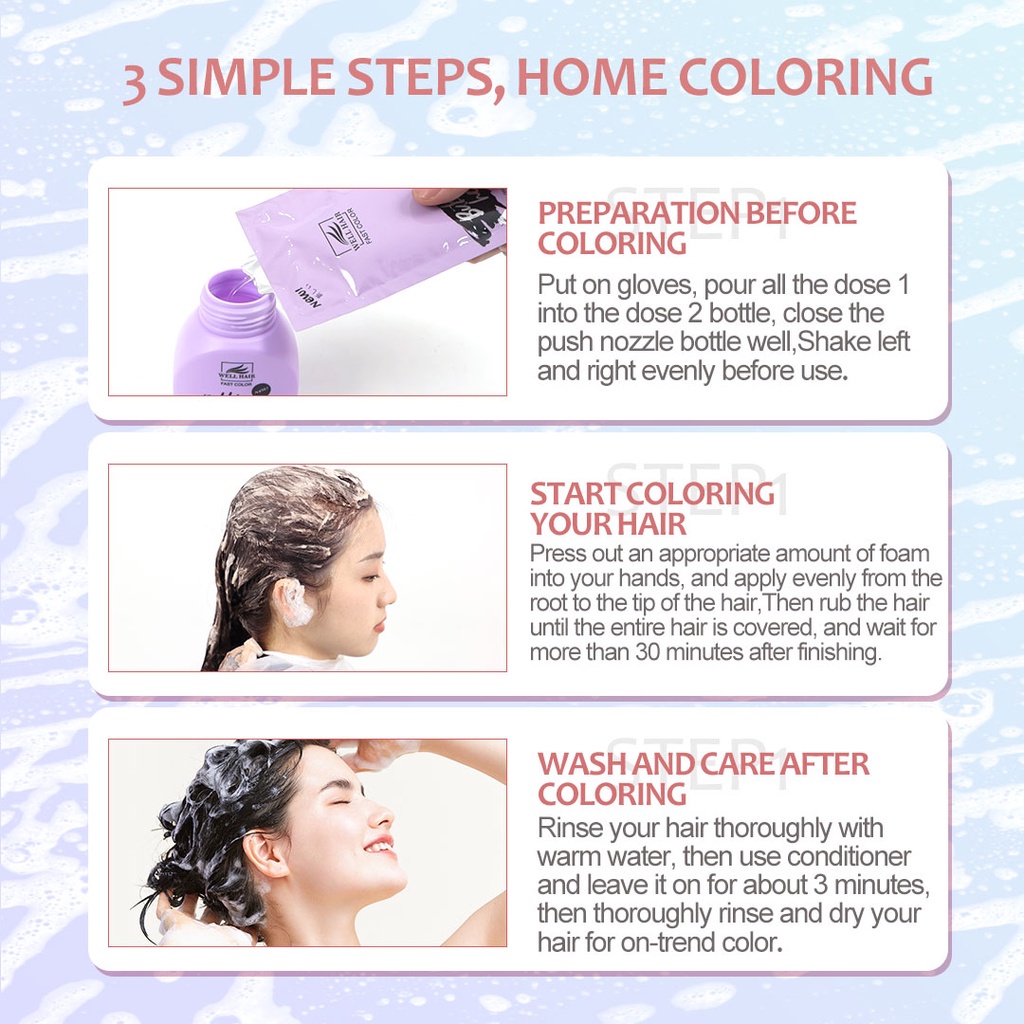 Well Hair 2-in-1 Coloring and Protection Bubble dyeing Hair Color Hair Dye 9 colors WH-R204