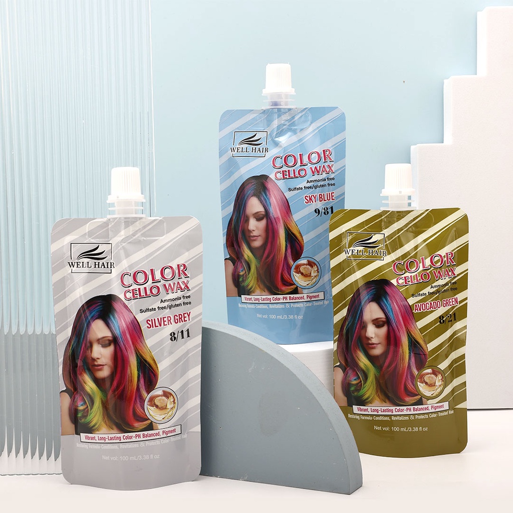 Well Hair 3in1 Color Dye Shampoo Conditioner 100ml Hair Color Silver Grey Pink Milk Tea Ash Hot Red