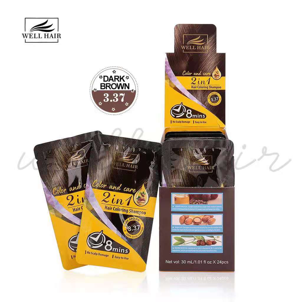 Well Hair Colored Hair Shampoo Black Hair Color White Hair Turns To Black Hair 30ml Dark Brown
