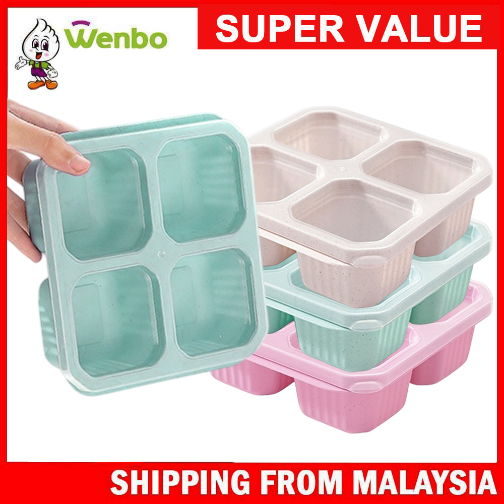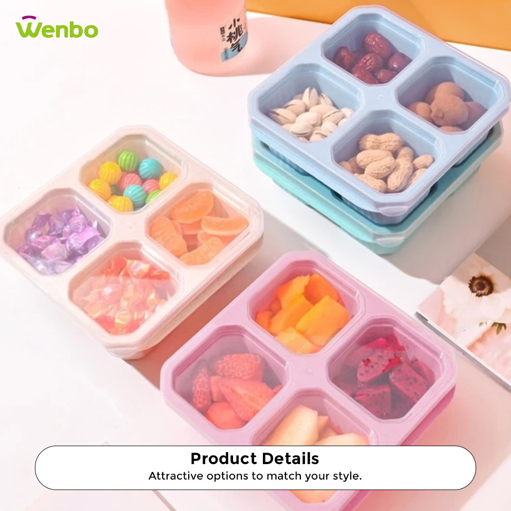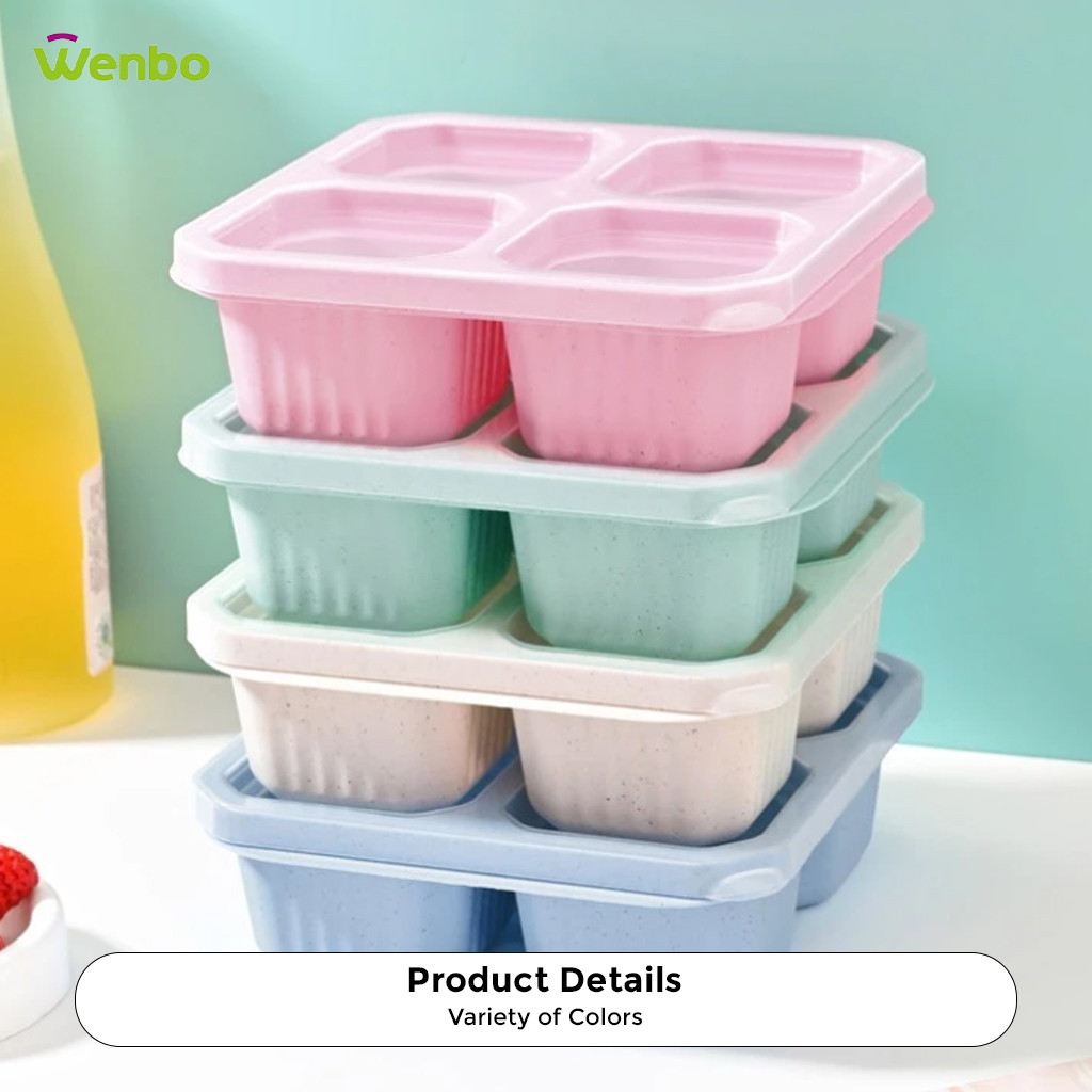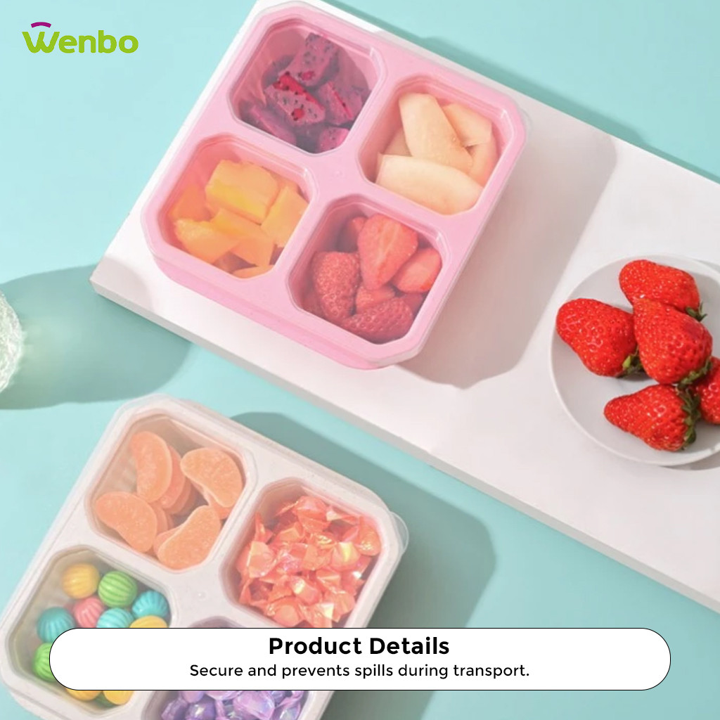 Wenbo Food Container With 4 Grid Compartment Wheat Straw Lunch Box Square Bento Portable Food Storage Container