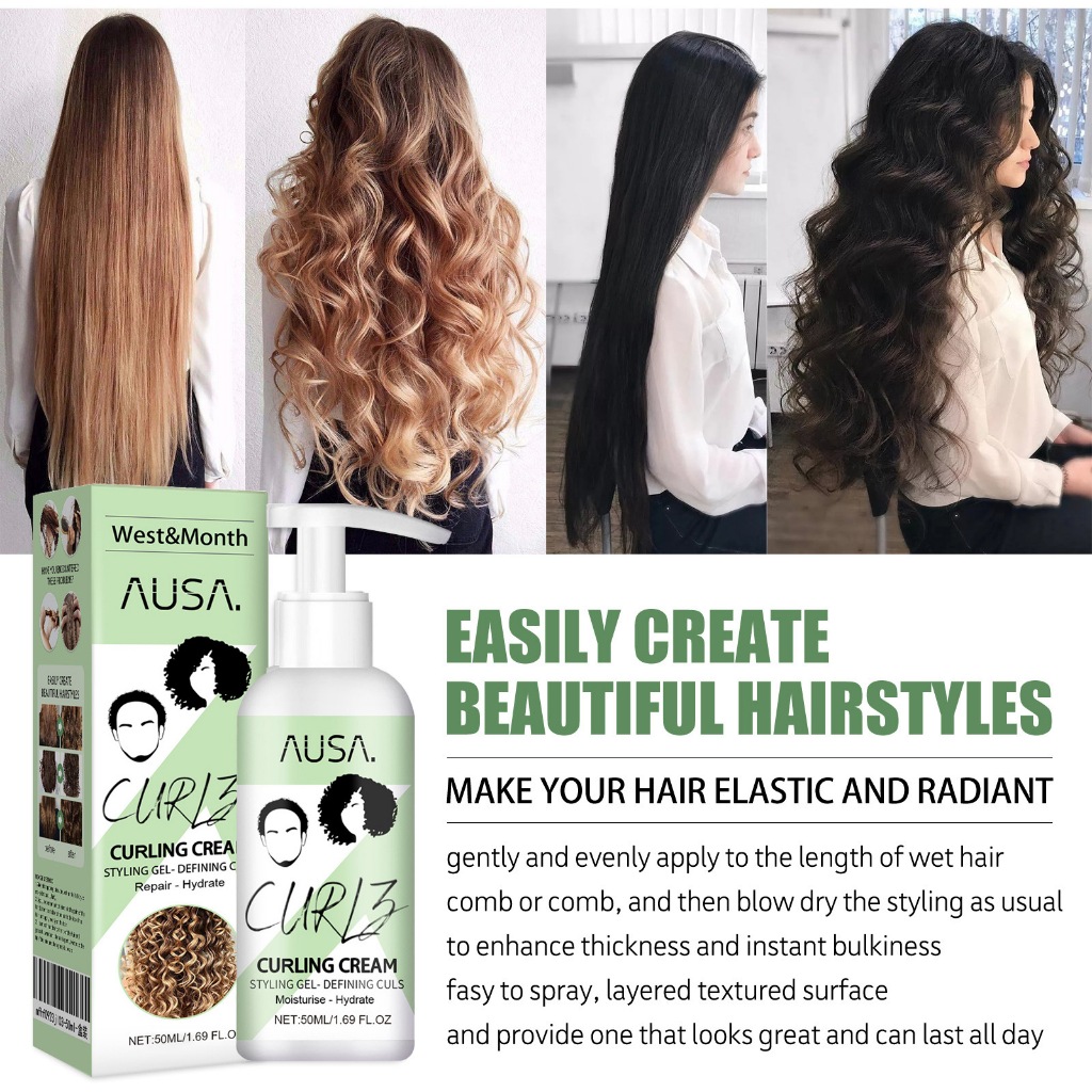 West&Month Hair Curling Cream 50ml Hair Styling Gel Moistuzing Defining Curly Hair Elastin Cream