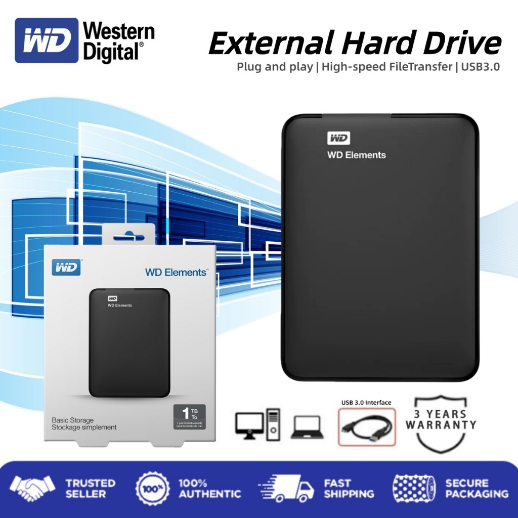 Western Digital External Hard Drive WD Elements USB 3.0 HDD 1TB/2TB Portable 2.5" Hard Drive Storage