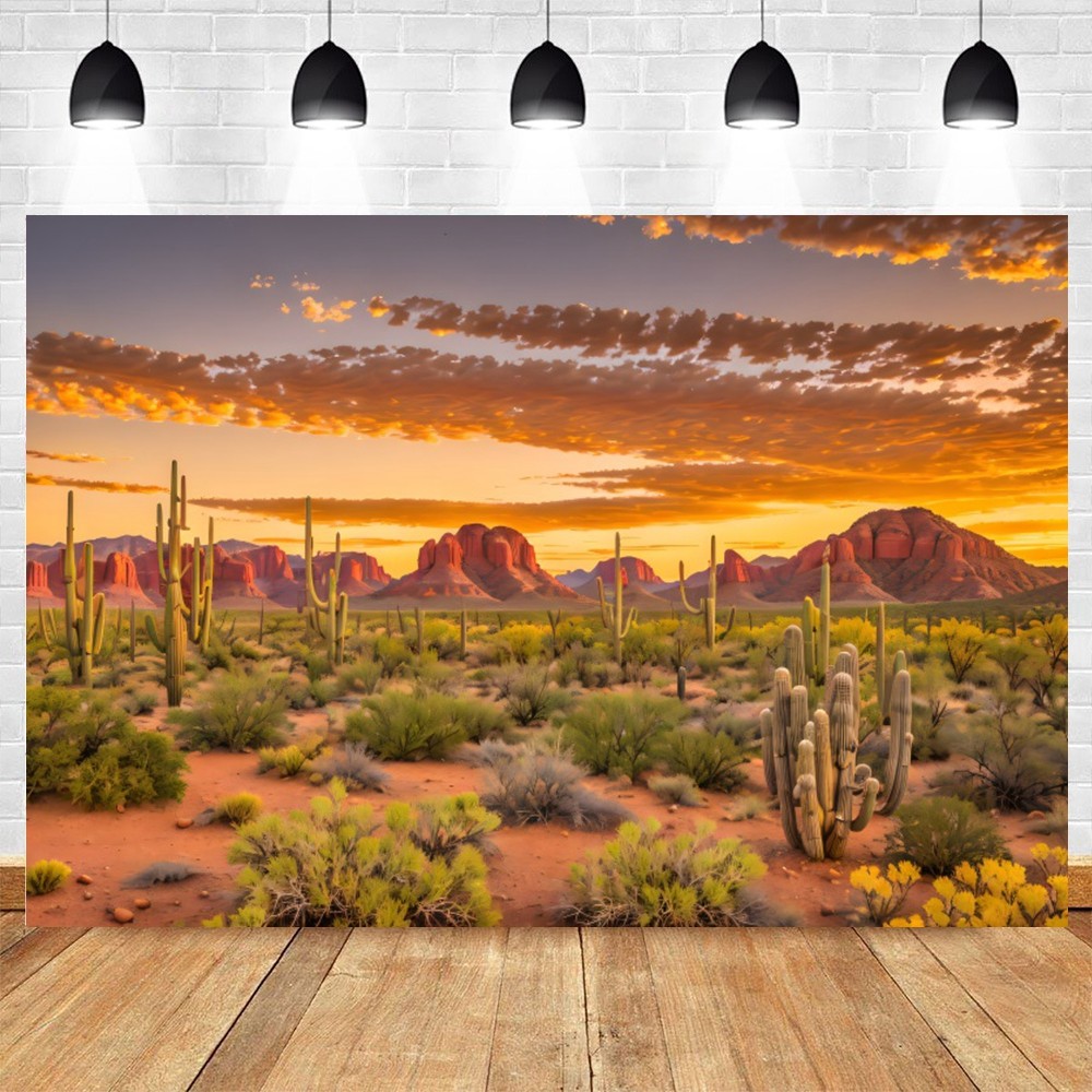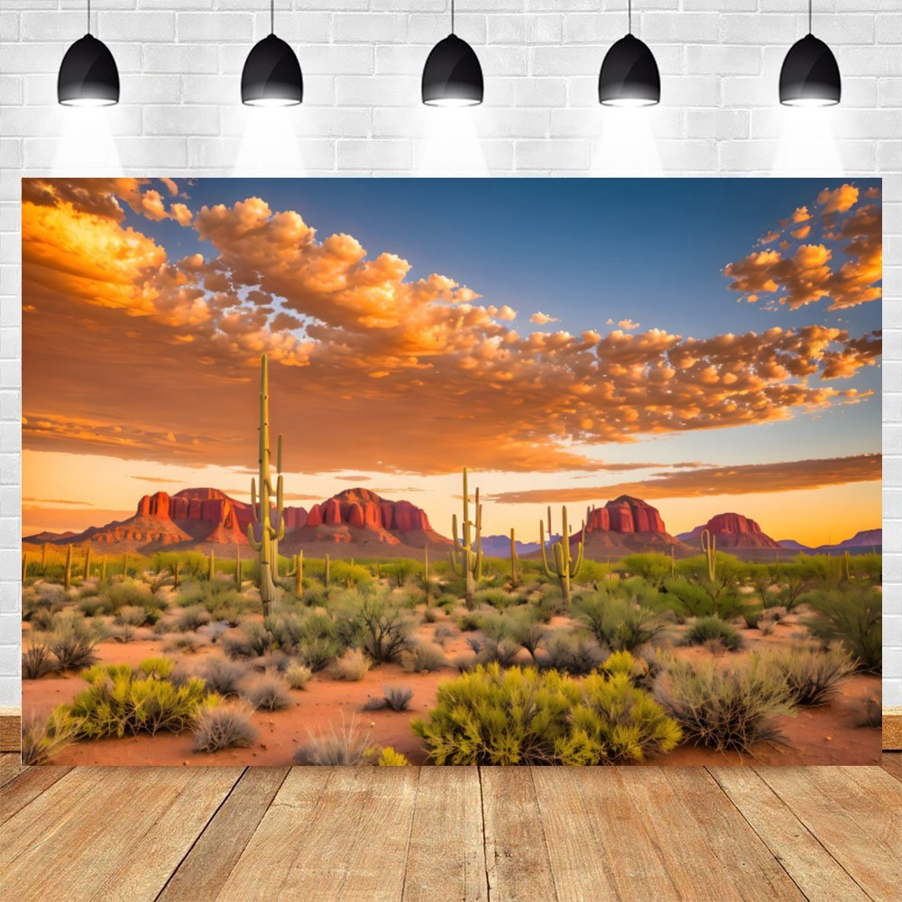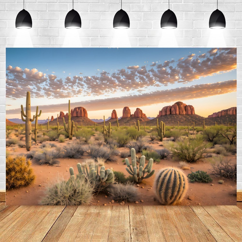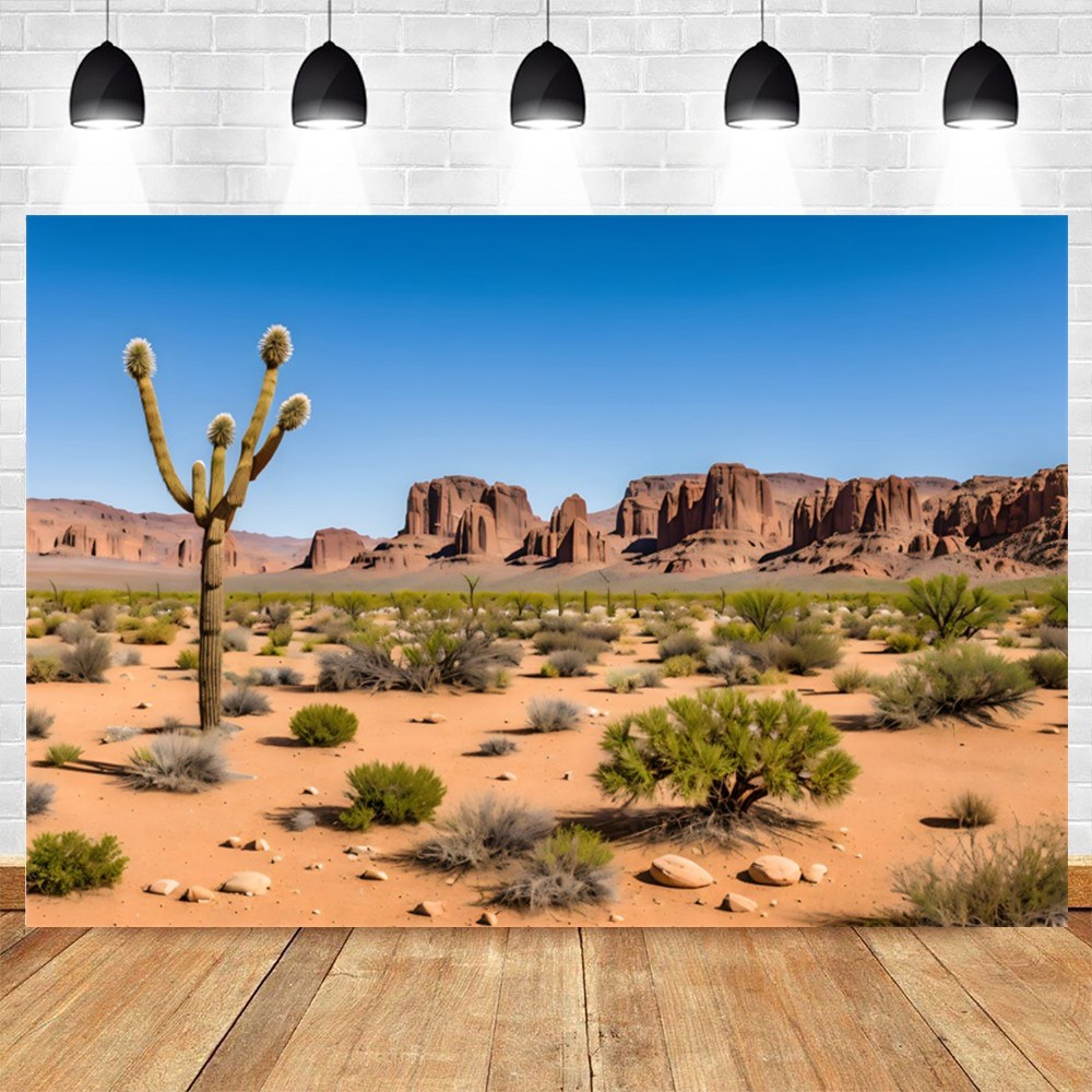 Western Scenery Backdrop Nature Desert Plants Cactus Blue Sky Travel Portrait Photo Background Photo Studio Props