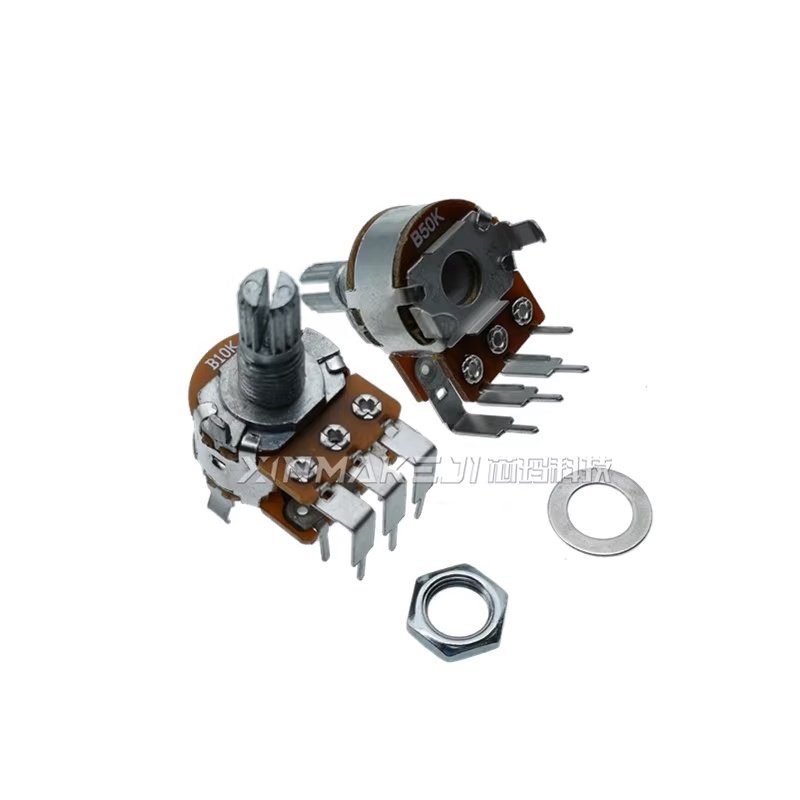 Wh148 Dual Potentiometer B10K 20K 50K 100K 500K Outer Bending Pin 6 Pin Power Discharge Potentiometer Dual Potentiometer Handle Length 15,