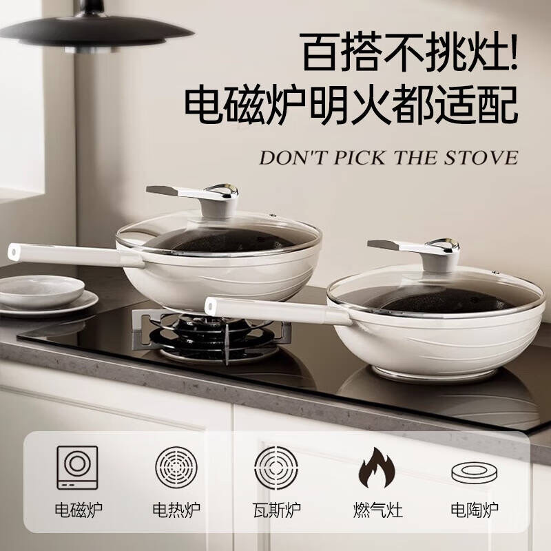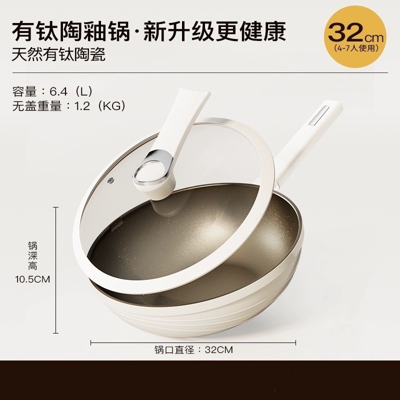 Whale Uncoated Titanium Pot Ceramic Non-stick Pot Household Wok Large Capacity Pan Kitchen Stove Un