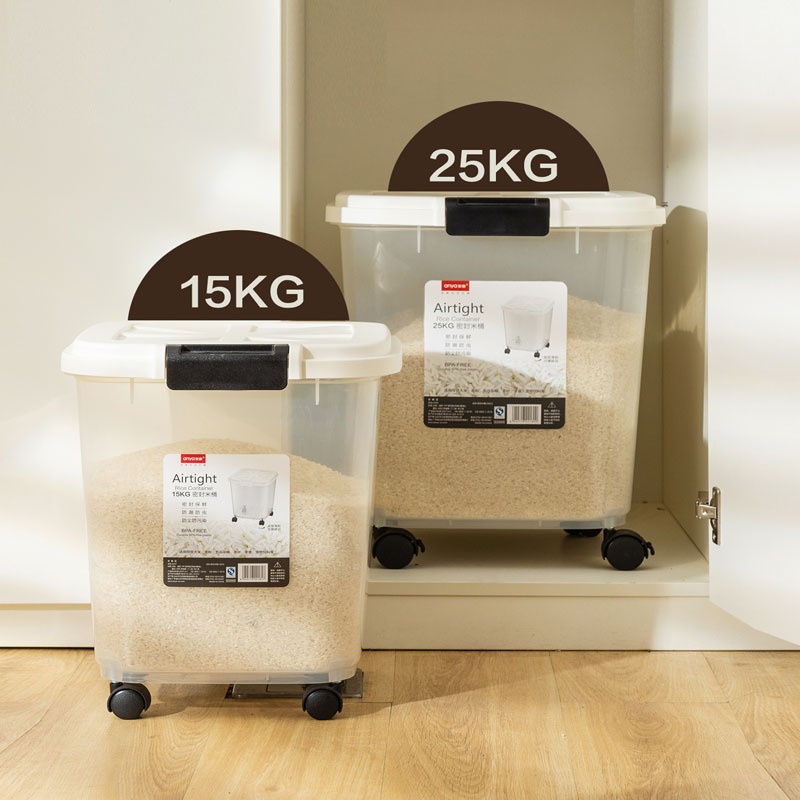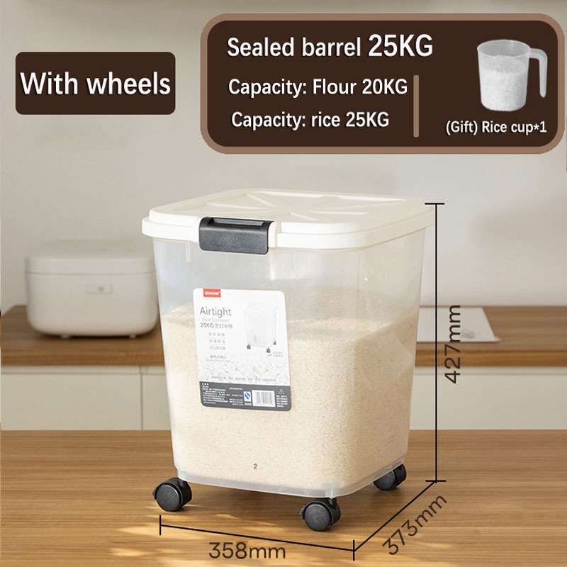 Wheeled rice storage barrel sealed storage barrel household large capacity 25/15/10kg storage box