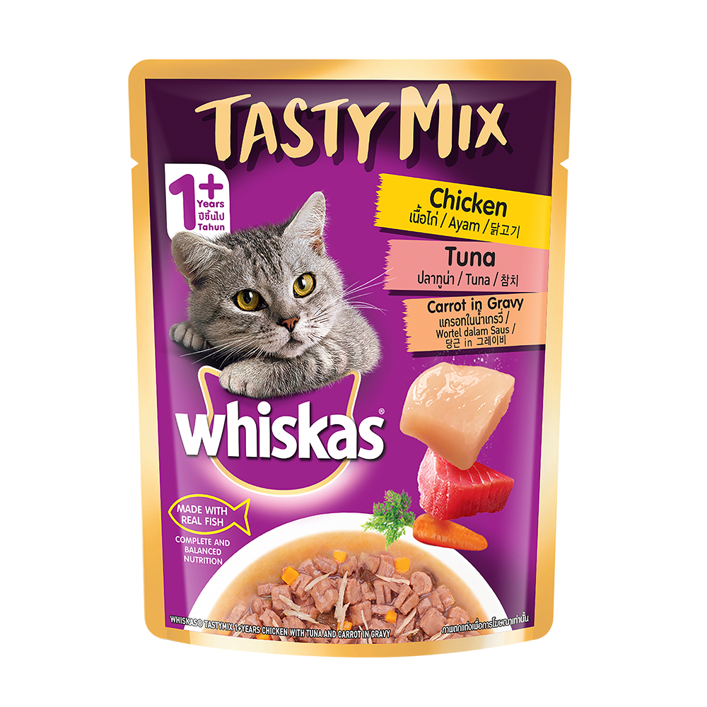 Whiskas Wet Cat Food 80g Pouch Adult/Kitten Tasty Mix 70g