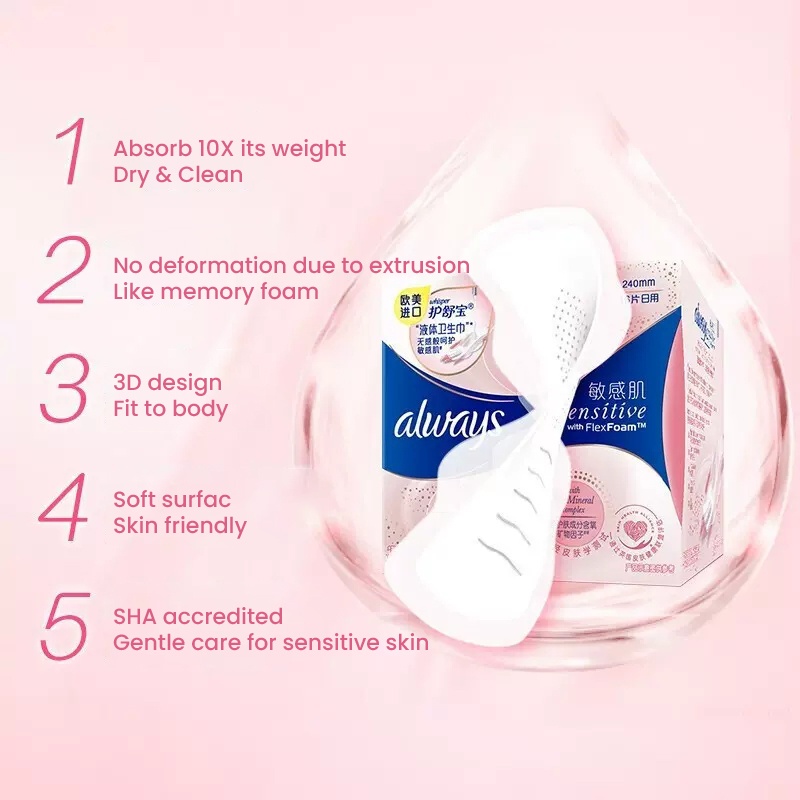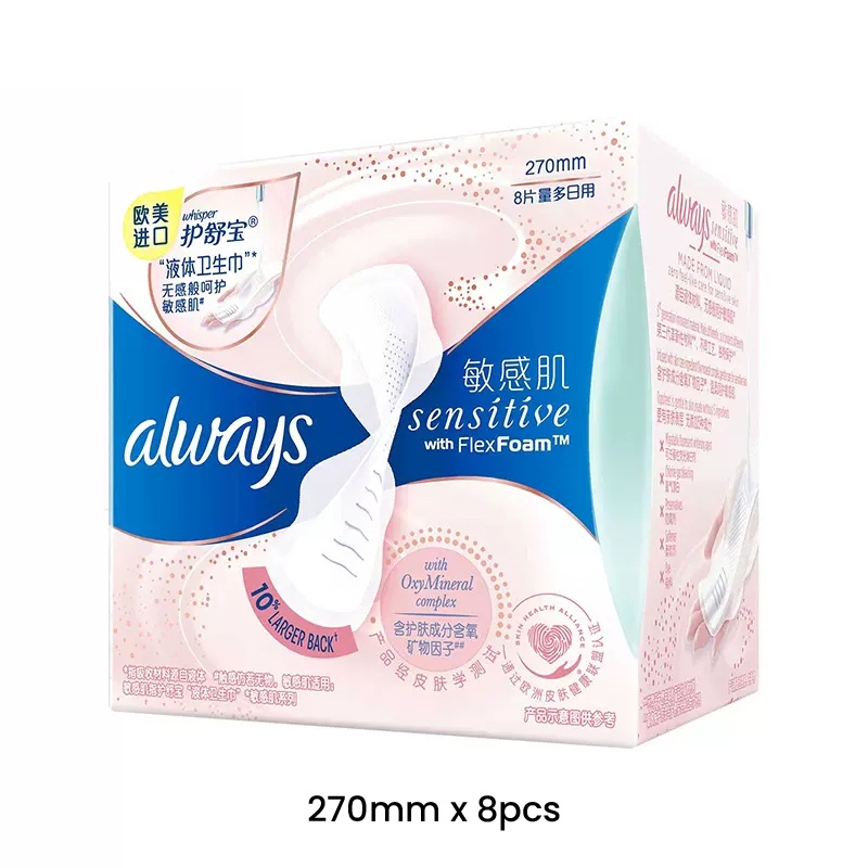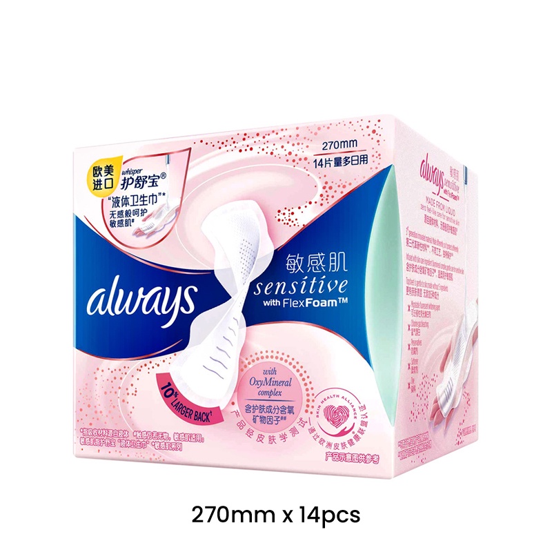Whisper Always Sensitive with Flexfoam Sanitary Napkin for Daily Use For Sensitive Skin Hygienic Pads for Women Napkin