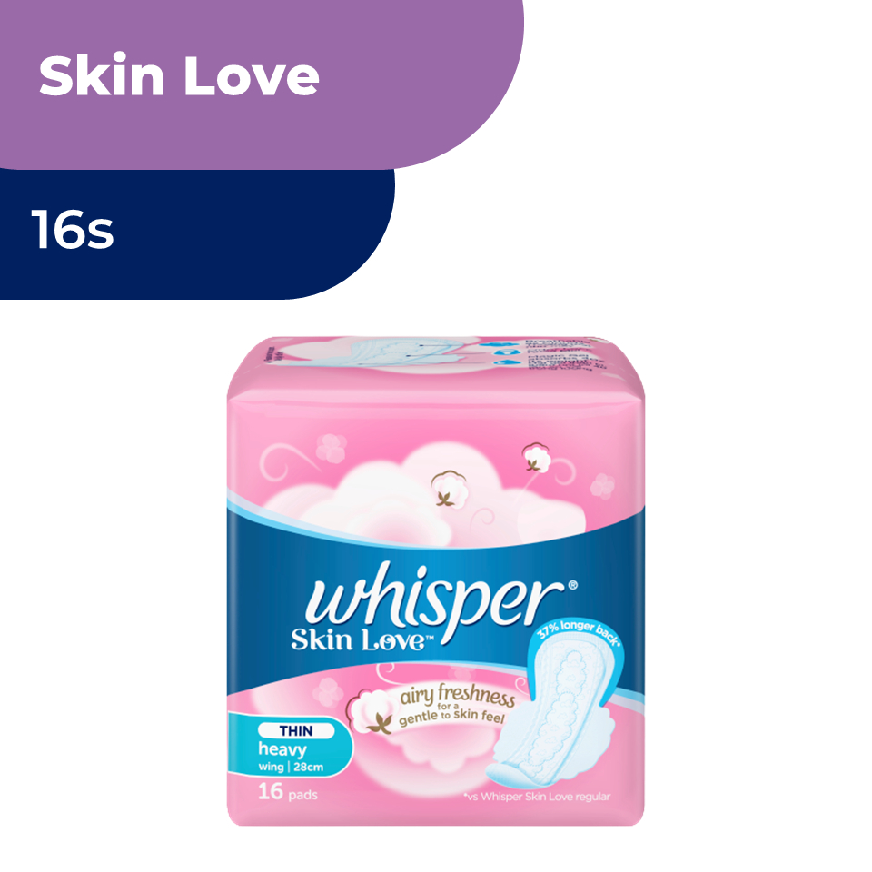 Whisper Skin Love Thin Heavy with Wings Sanitary Napkins 16's 28CM