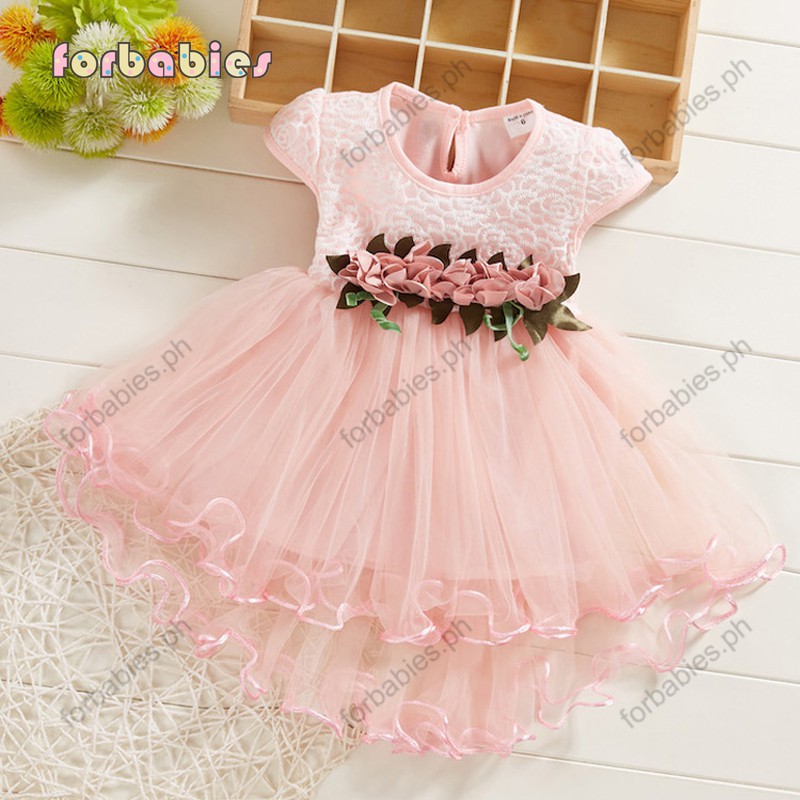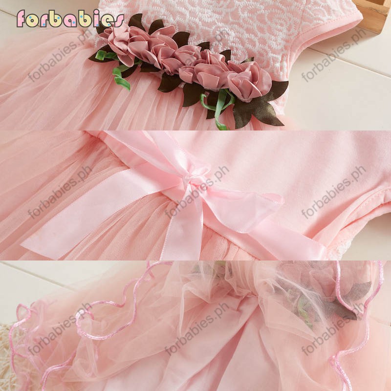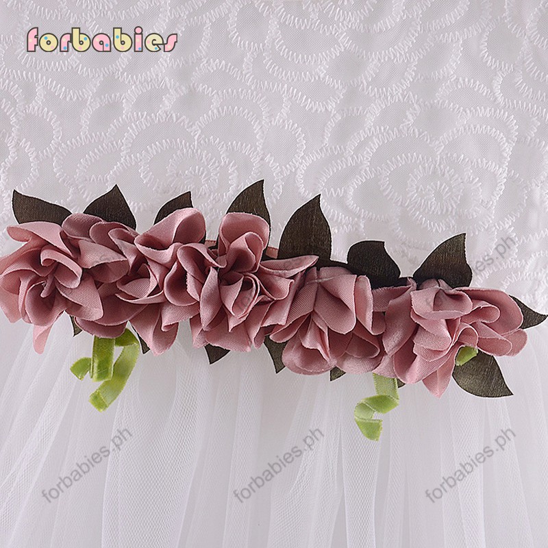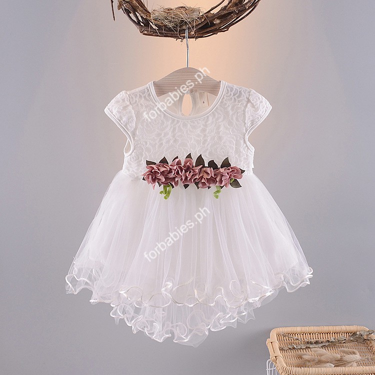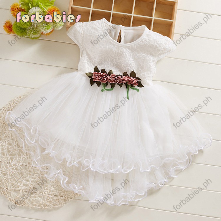 White Binyag Dress for baby girl Baptismal Birthday Lace Rose Flower Elegant Tutu Gown for baby girl