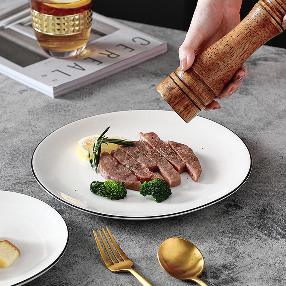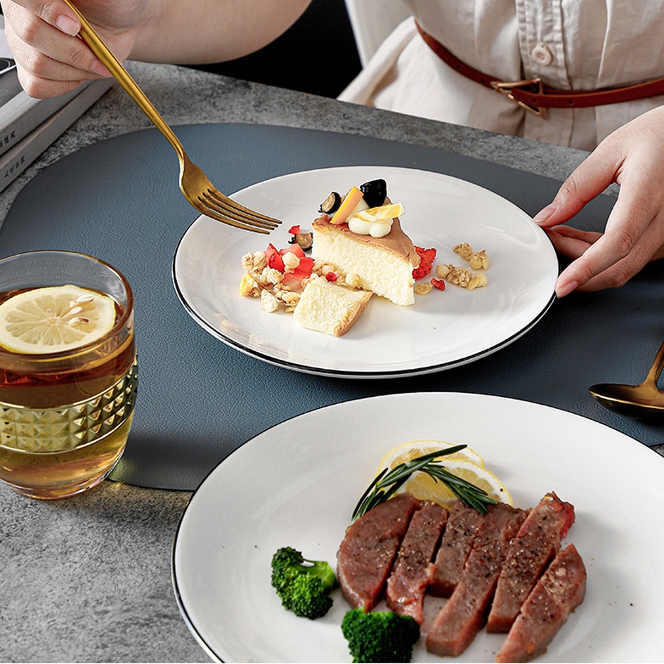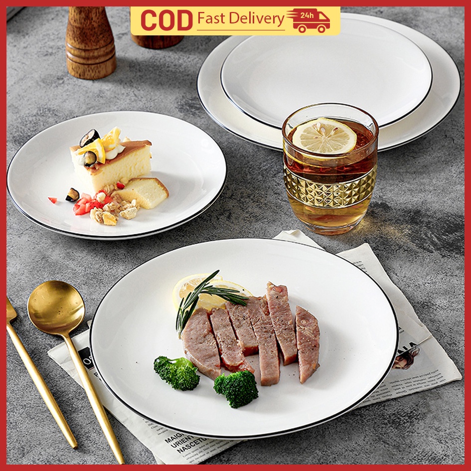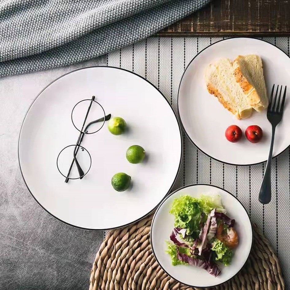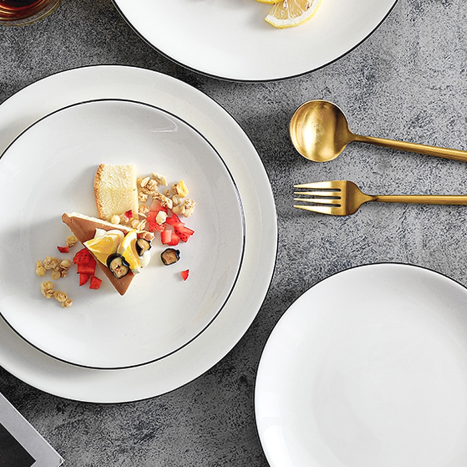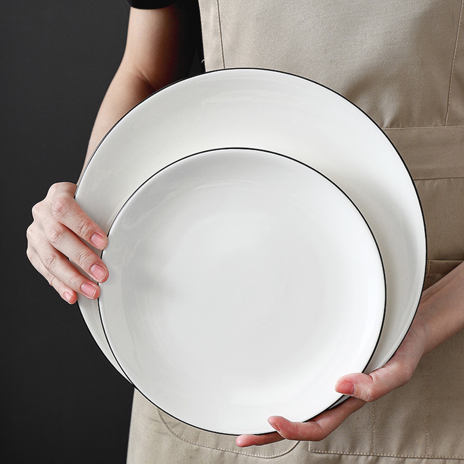 White Ceramic Plate Modern Minimalist Black Line Plate Hotel Restaurant Party Cafe Tableware