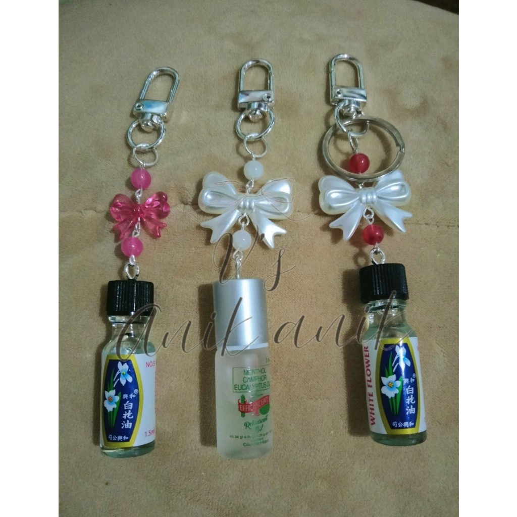 White Flower Oil Keychain (Customizable name)