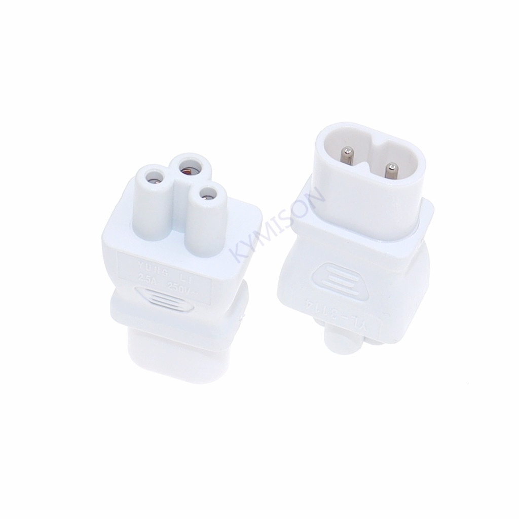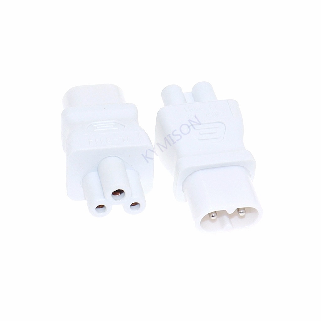 White IEC 320 C5 to C8 Power Adapter, IEC 320 3 Pole Female to 2 pole Male Converter Plug C5-C8 AC Adapter