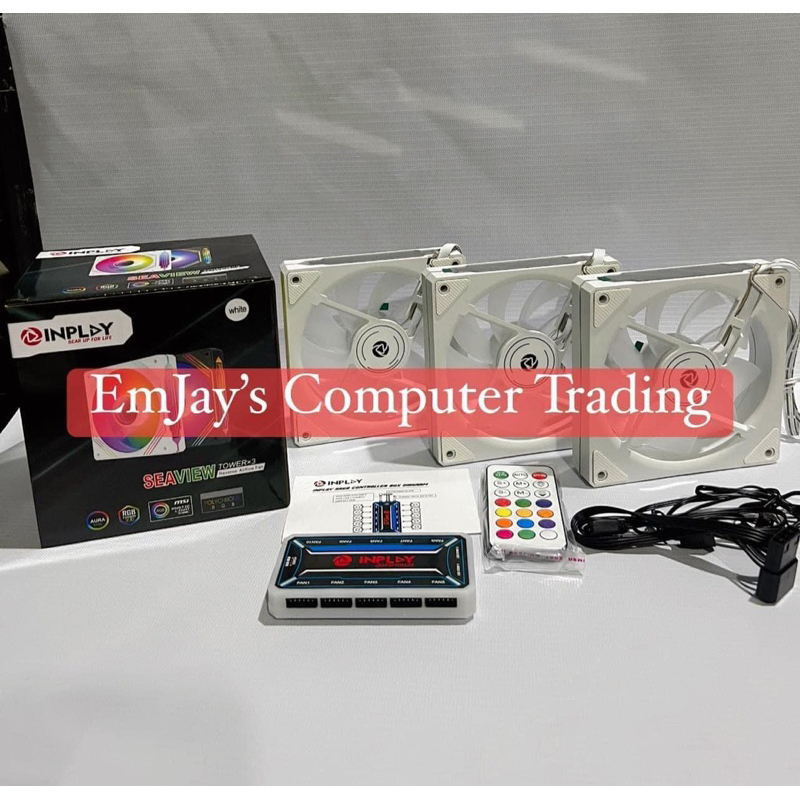 White Inplay Seaview X3 120MM RGB Case Fan 6Pin Silent Computer Fan With RGB Hub Control Remote