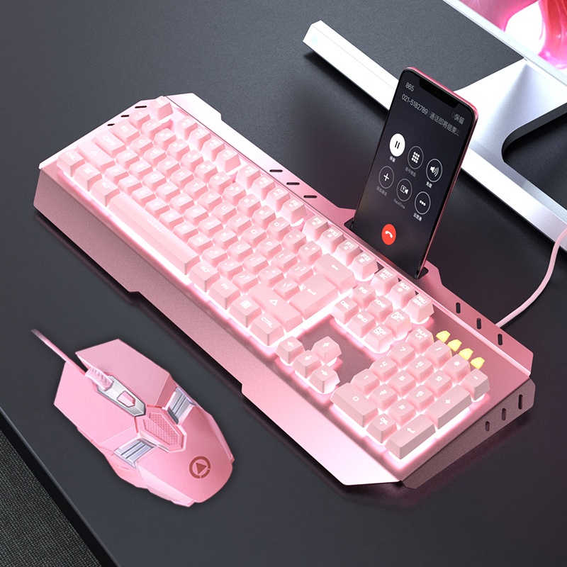 White LED light Backlight Gaming Keyboard and Mouse Combo Mechanical Feel Metal USB Wired keyboards with mice set keybord key board keyb keybaord keybaod For Game Gamer Player Computer PC Desktop Laptop typing office