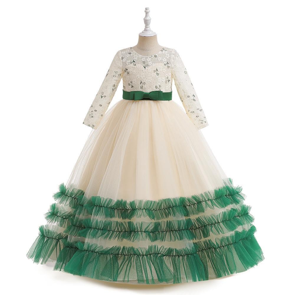 White Lace Girl Dresses Tulle Puffy Appliqued Long Sleeve For Weddings Party First Communion Pageant Gown Long dresses