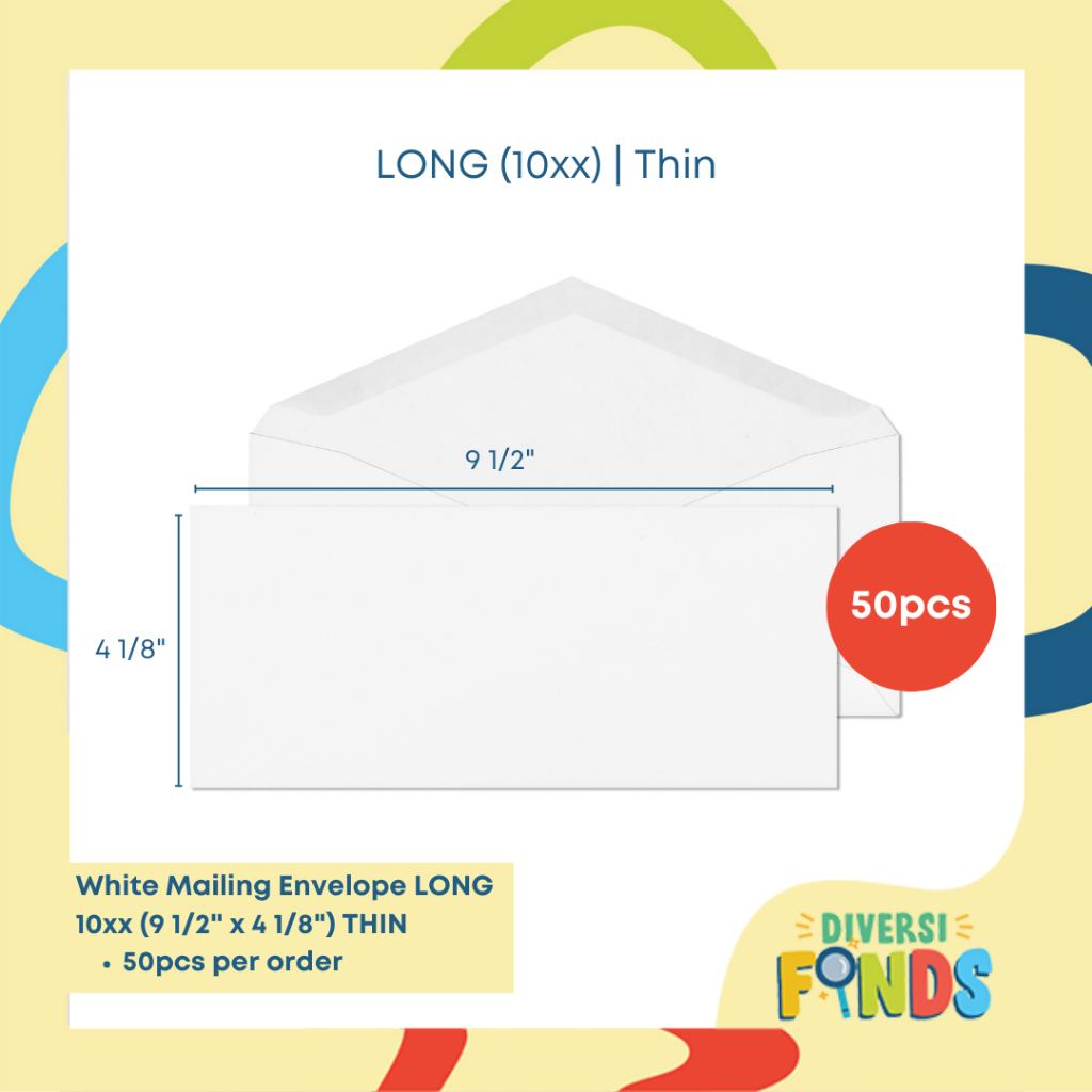 White Mailing Envelope Short (6 3/4X) and Long (10XX) - 50's per order - Thin 60gsm and Thick 80gsm
