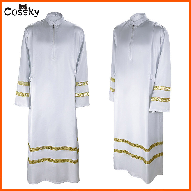White Pastor Costume Medieval Mission Robe Priests Cosplay Outfit Clergy Robes Halloween Cosplay Clothing