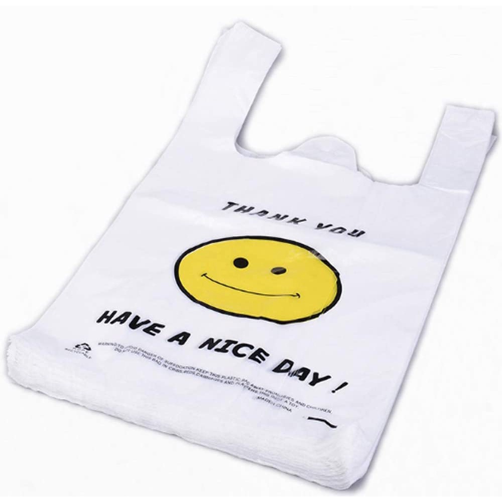 White Plastic Bags Carry Out Shopping Bags Smiley Smiling Smile Face Polybags