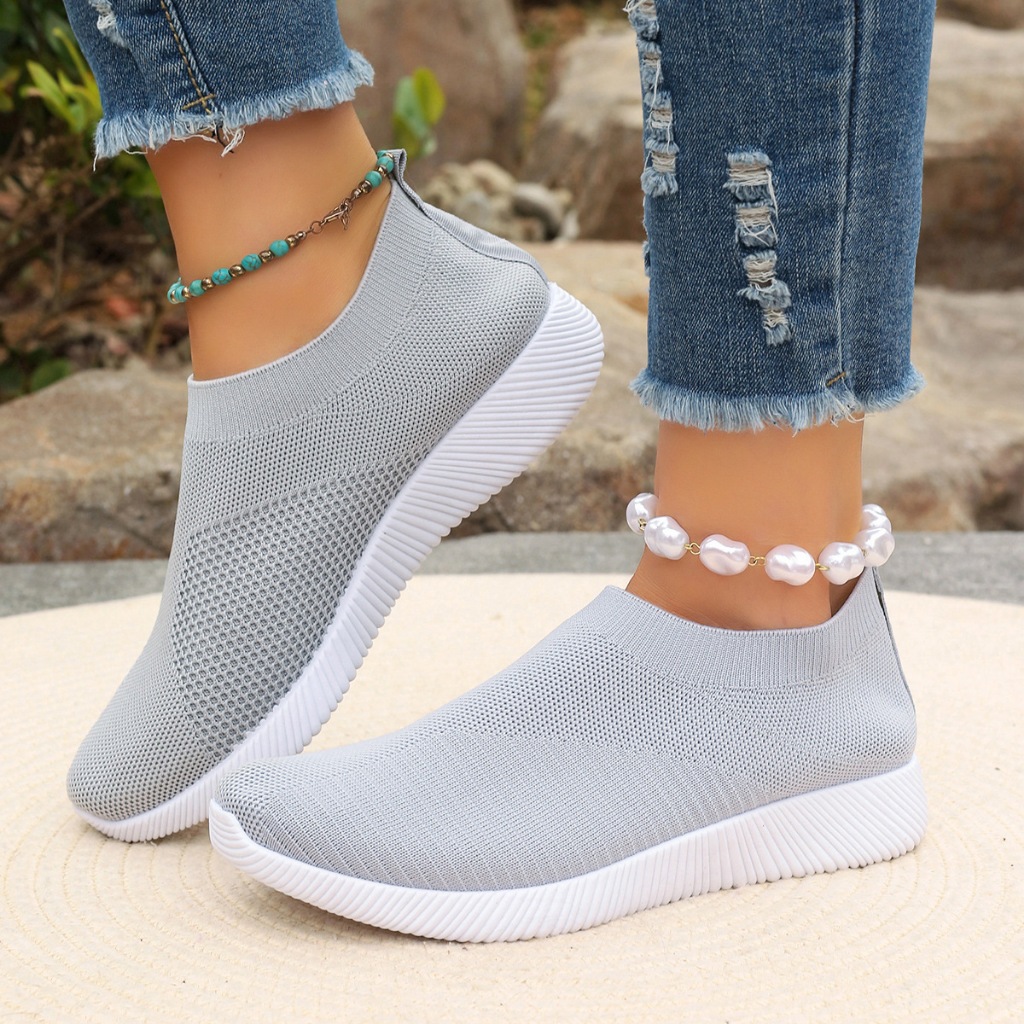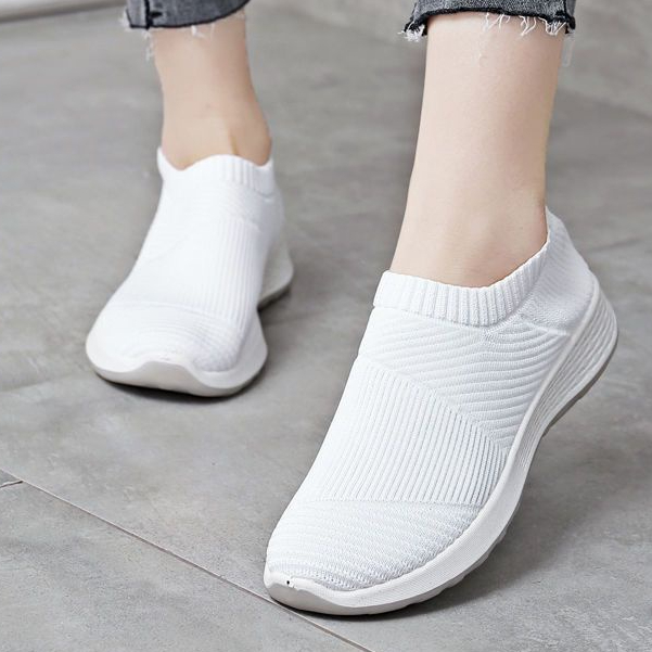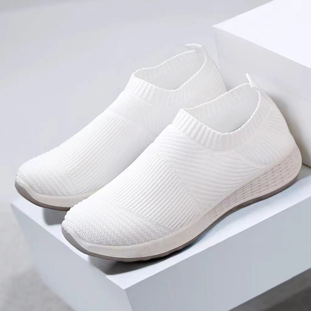 White Rubber Doll Shoes For women Slip on Ladies shoes Breathable Fly woven Soft Bottom Sneakers