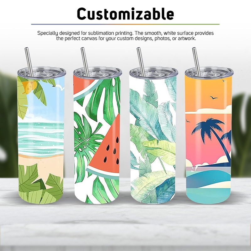 White Sublimation Coated Blank Tumbler Skinny Slim 15oz Sublimation Printable Tumbler