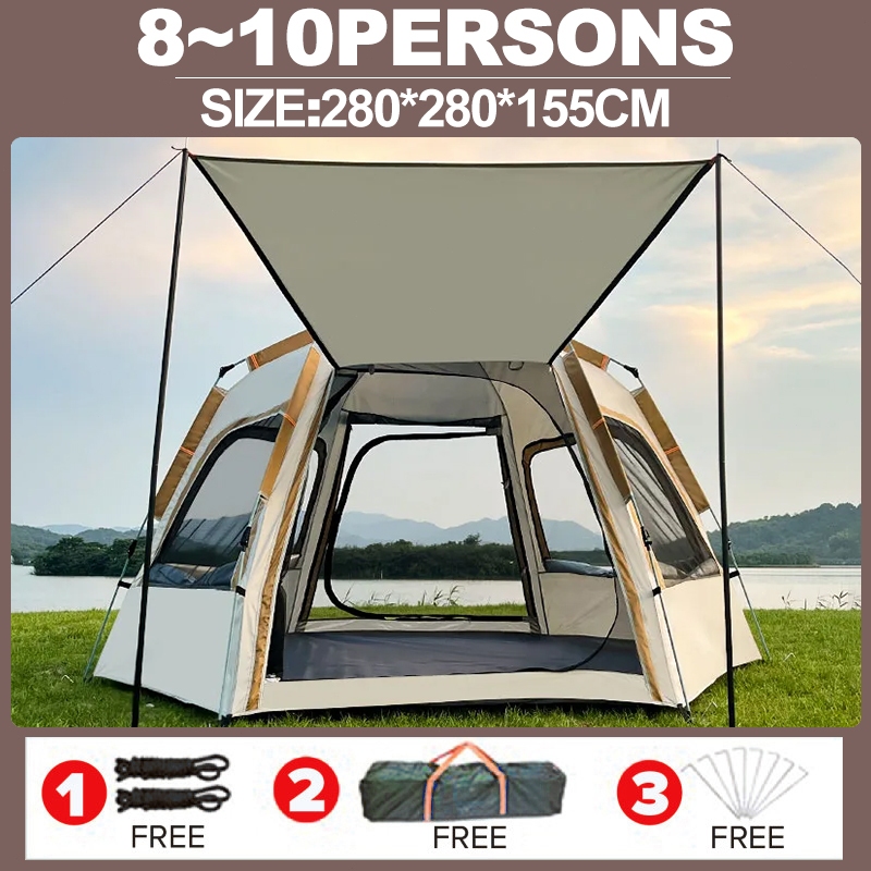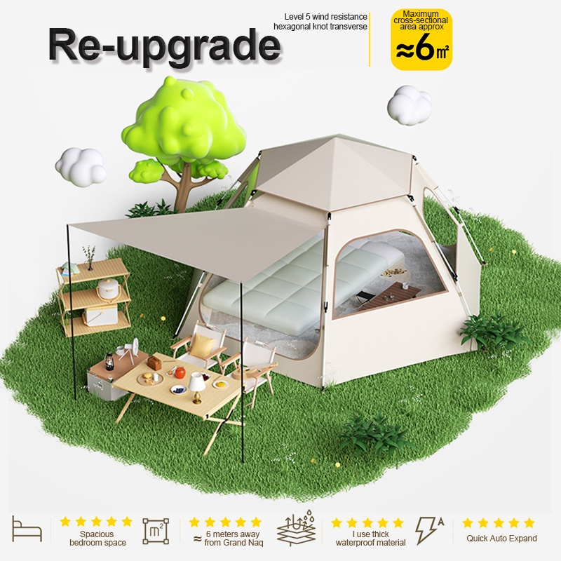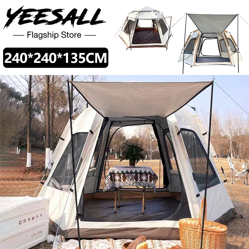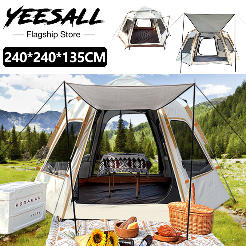 White tent outdoor portable hexagonal folding fully automatic one room one hall park camping tent