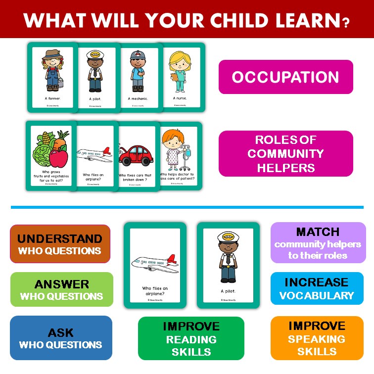 Who WH Question English Flash Card For Kids Occupation Speech Therapy Speech Delay Autism Education Educational Cards