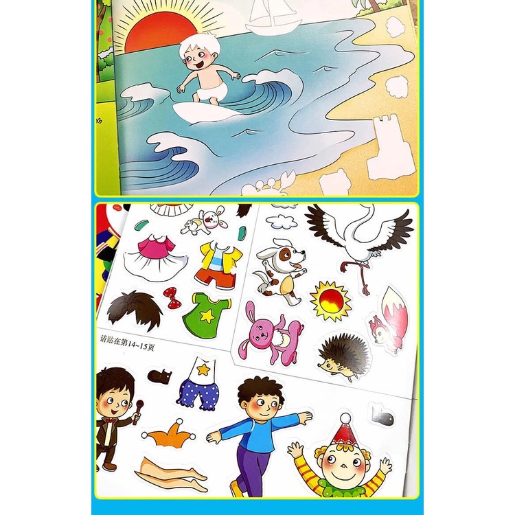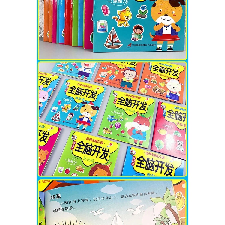 Whole Brain Development Sticker Book 2-6 Years Old Baby Concentration Training Cartoon Stickers Stickers Development Brain Early Education Puzzle/Sticker Book (Reusable)