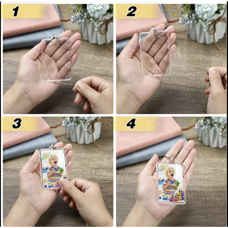 Wholesale Crafting Gift Clear Photo Frame Holder Plastic Keyring Double Sided Blank Transparent Acry