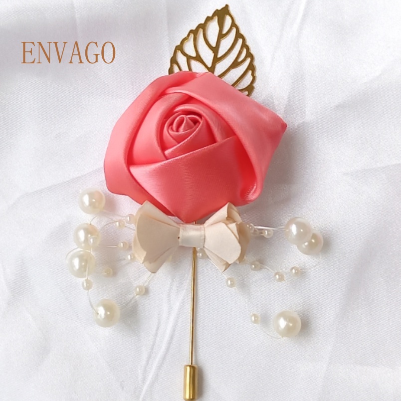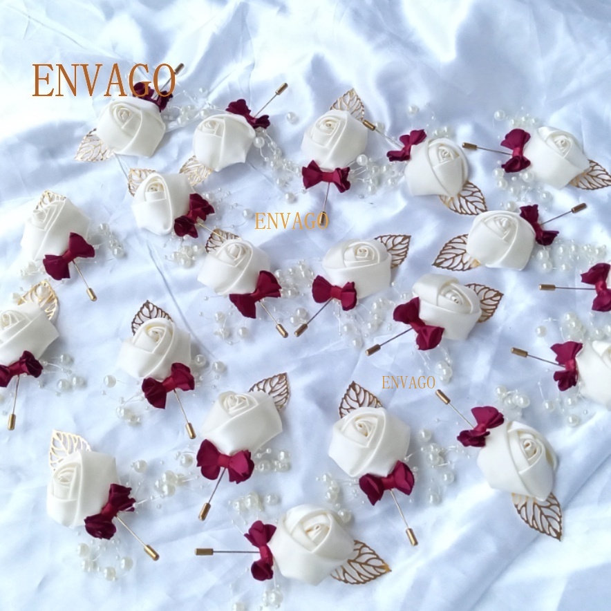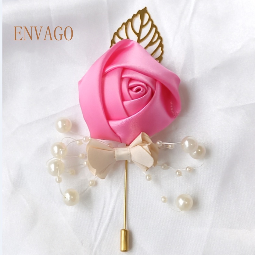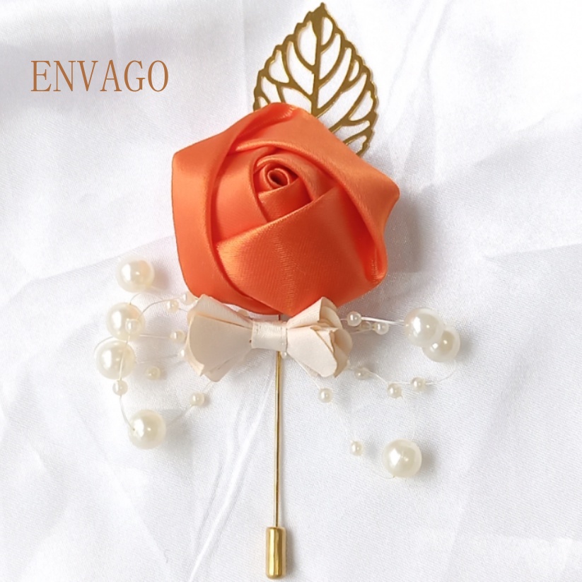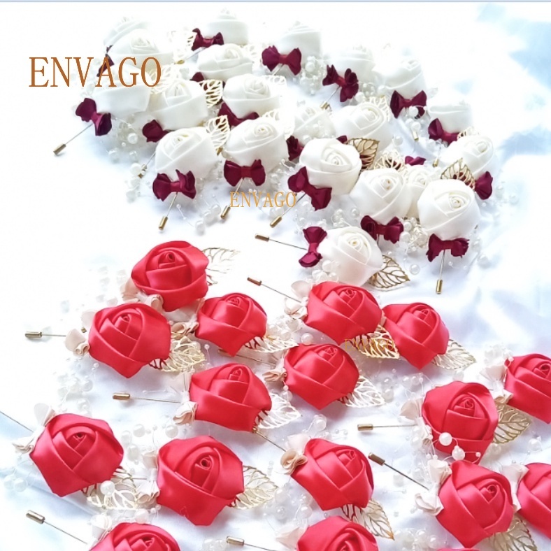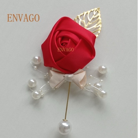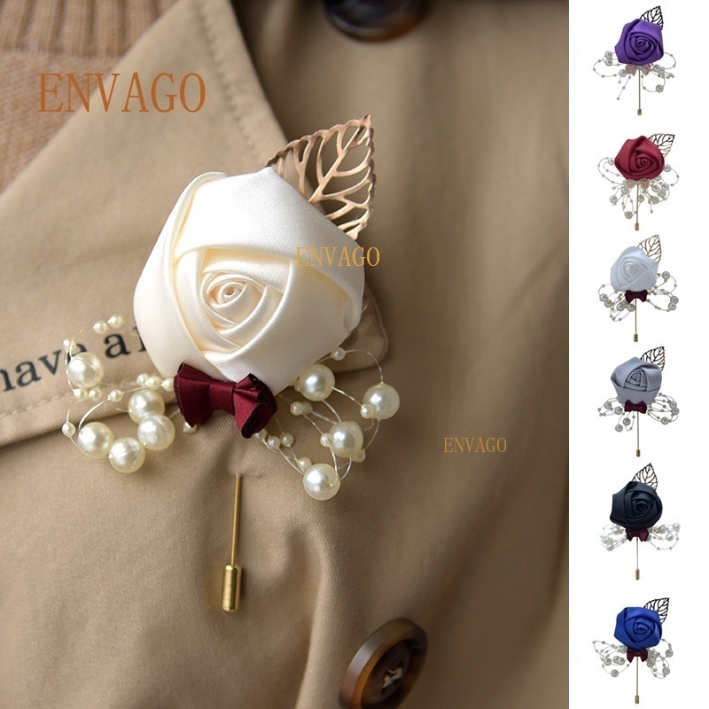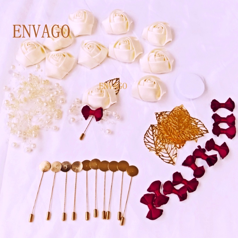 Wholesale high quality 60colors wedding corsage diy set Best Rose Man Groom Boutonniere Wedding Party Prom Man Suit Corsage Pin Brooch DIY SET