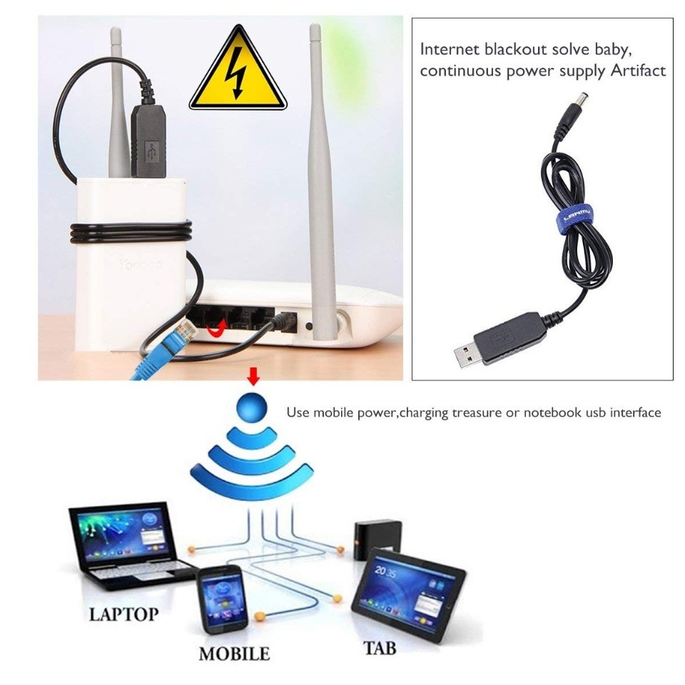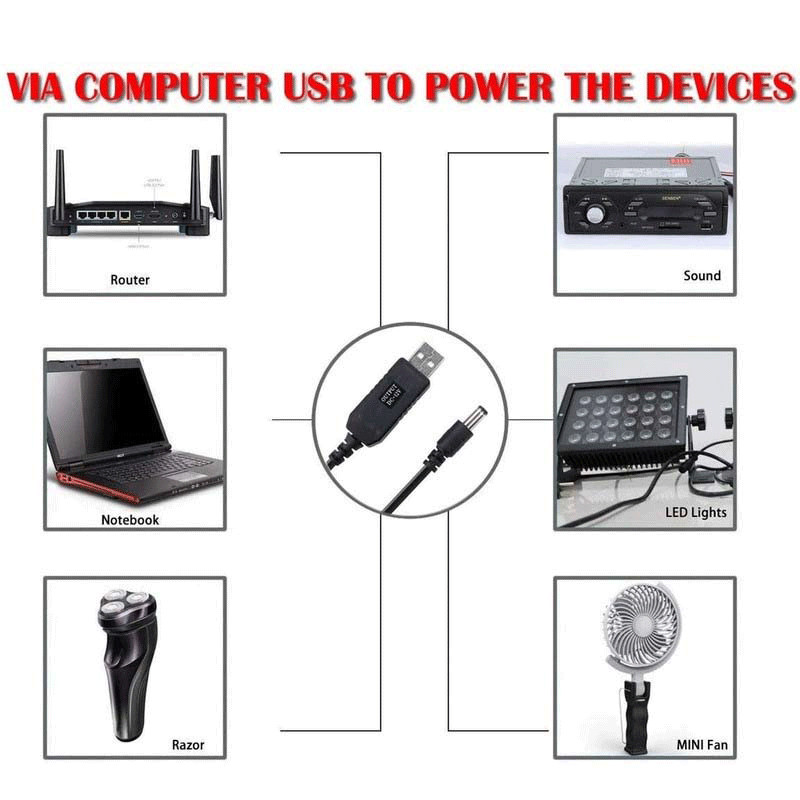 WiFi Connector to Powerbank Cable, DC 5V to 12V USB Cable Step-up Boost Converter for Wifi Router
