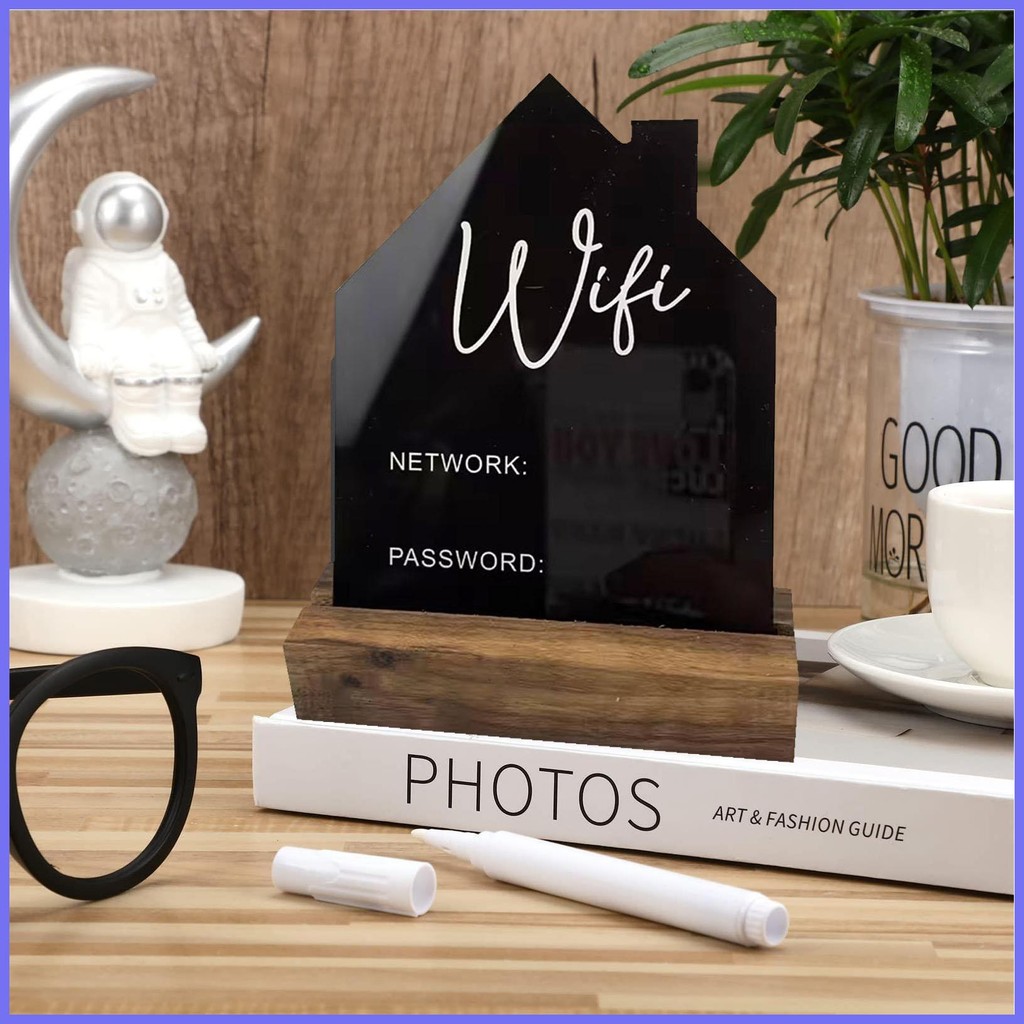 WiFi Password Sign for Home Acrylic WiFi Pattern Password Sign Photo Block Holder Freestanding Sign with hontin2ph