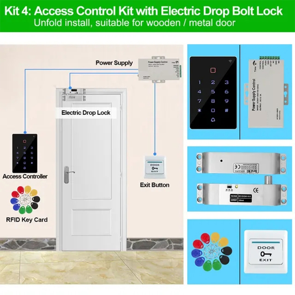 WiFi Tuya APP Door Access Control System Kit Waterproof RFID Keypad Access Controller Electric Locks Kits