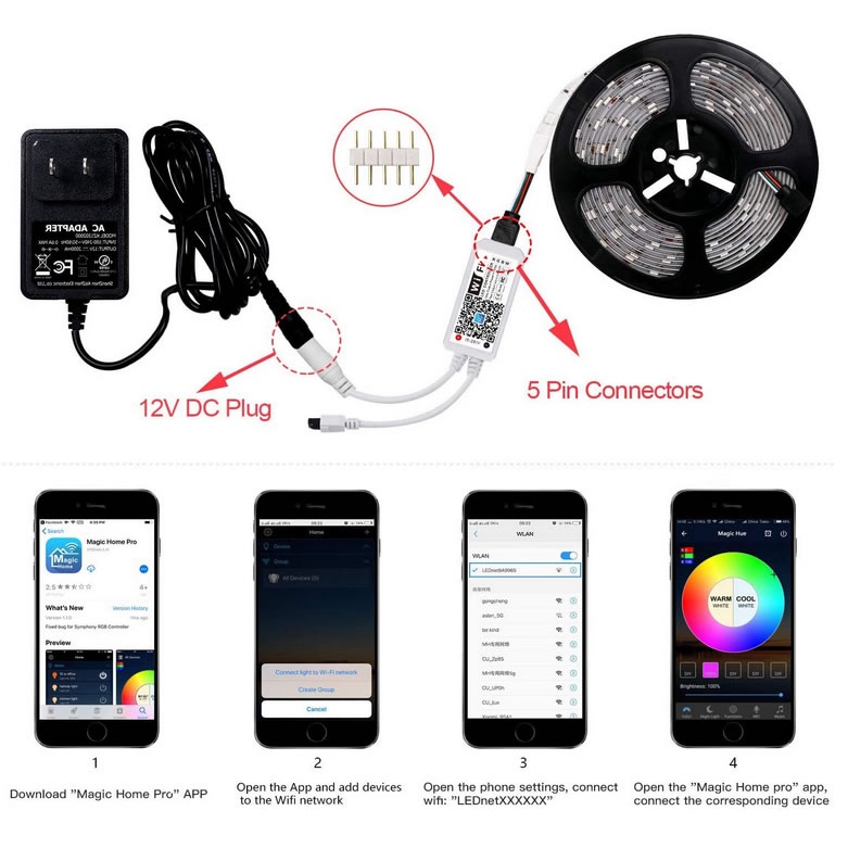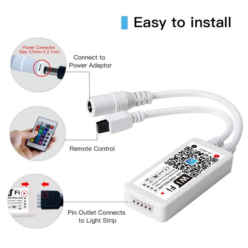 WiFi Wireless LED Smart Controller, Working with Android,iOS System, RGB LED Strip Lights 12V