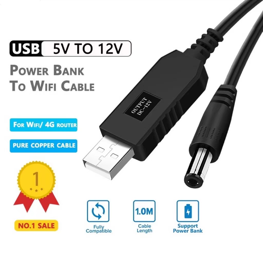 WiFi to Power bank Connector DC 12V USB Cable Boost Converter Step-up Cord for Wifi Router Modem