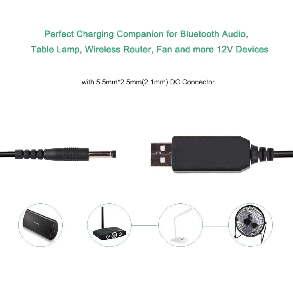 WiFi to Powerbank Connector USB 5V to 12V USB Cable Router Modem Adaptor to Powerbank Cord