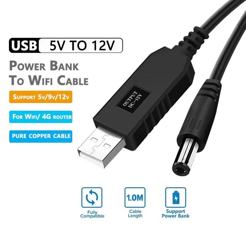 WiFi to Powerbank Connector USB 5V to 12V USB Cable Router Modem Adaptor to Powerbank