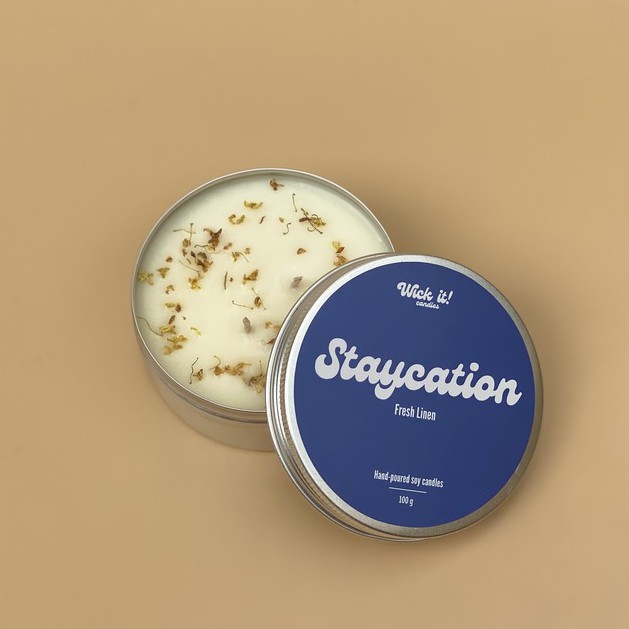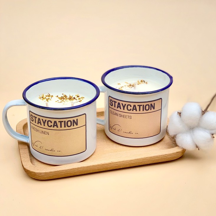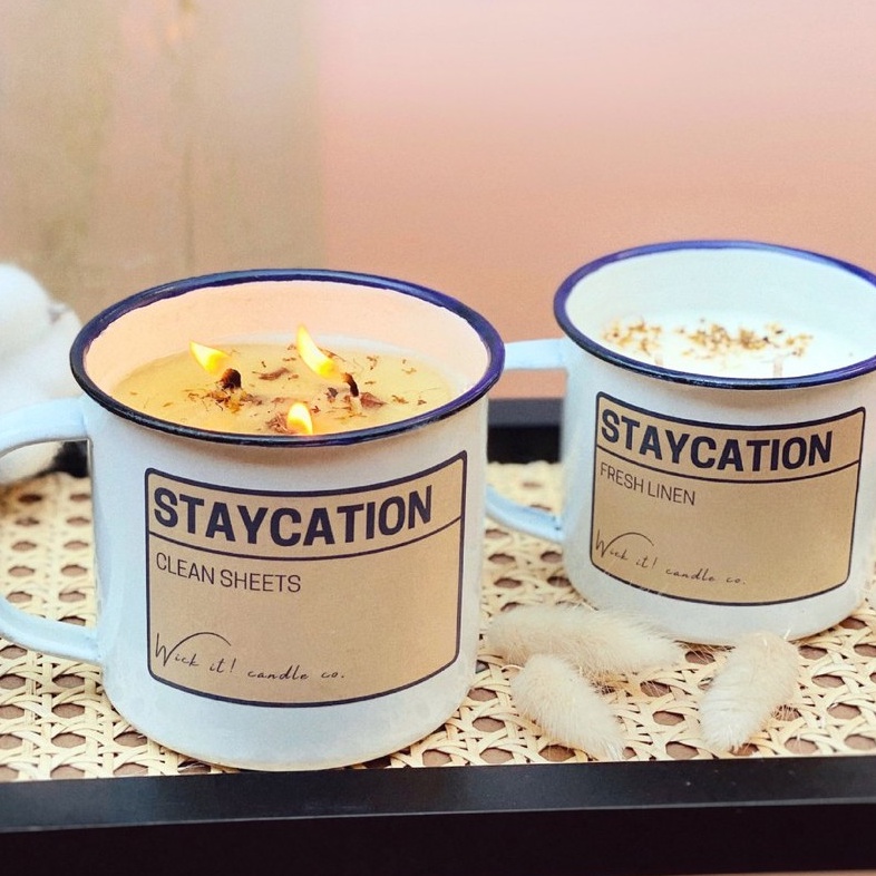 Wick It! Candles | STAYCATION | Fresh linen/Clean sheets | 100% soy candle in retro enamel cup