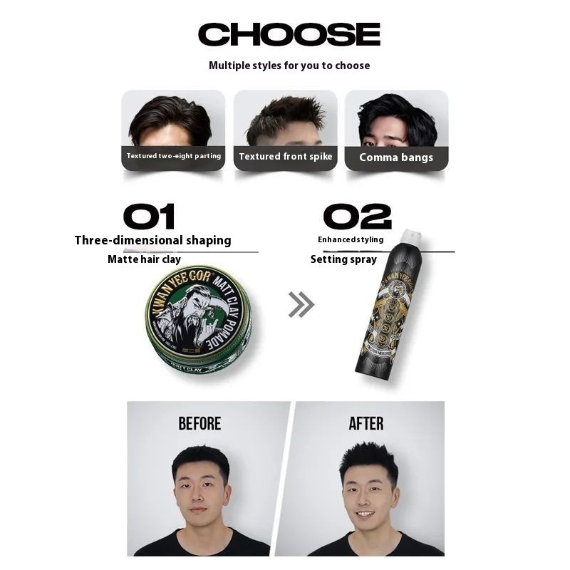 KWAN YEE GOR Men's Natural Matte Hair Wax Fresh Scent Odorless Hair Gel Styling Volumizing Long-lasting Flyaway Tamer
