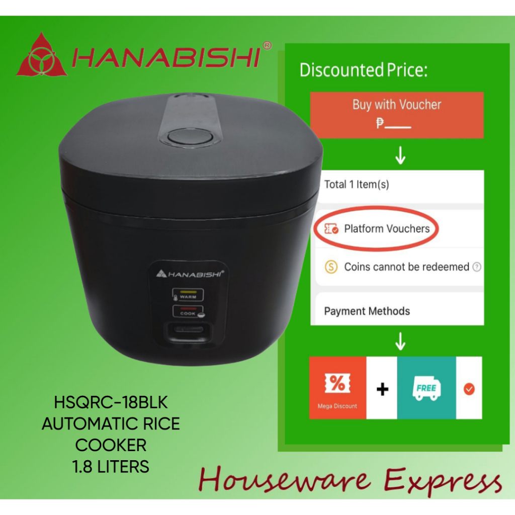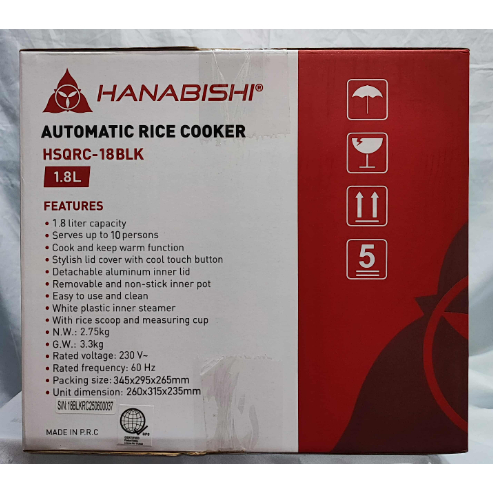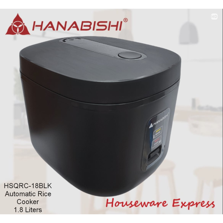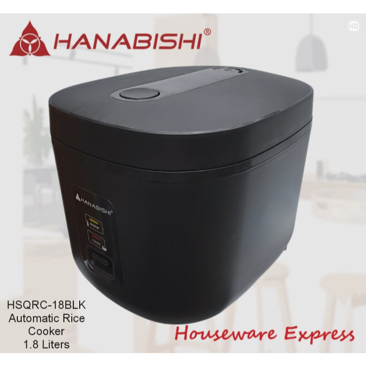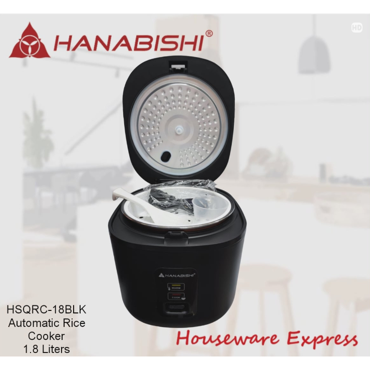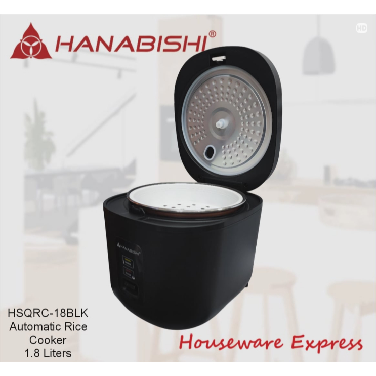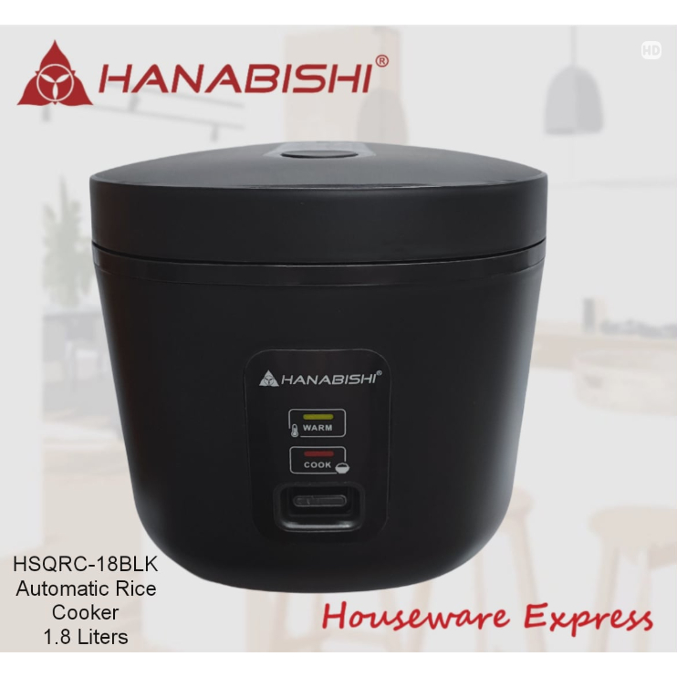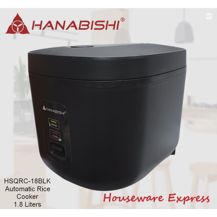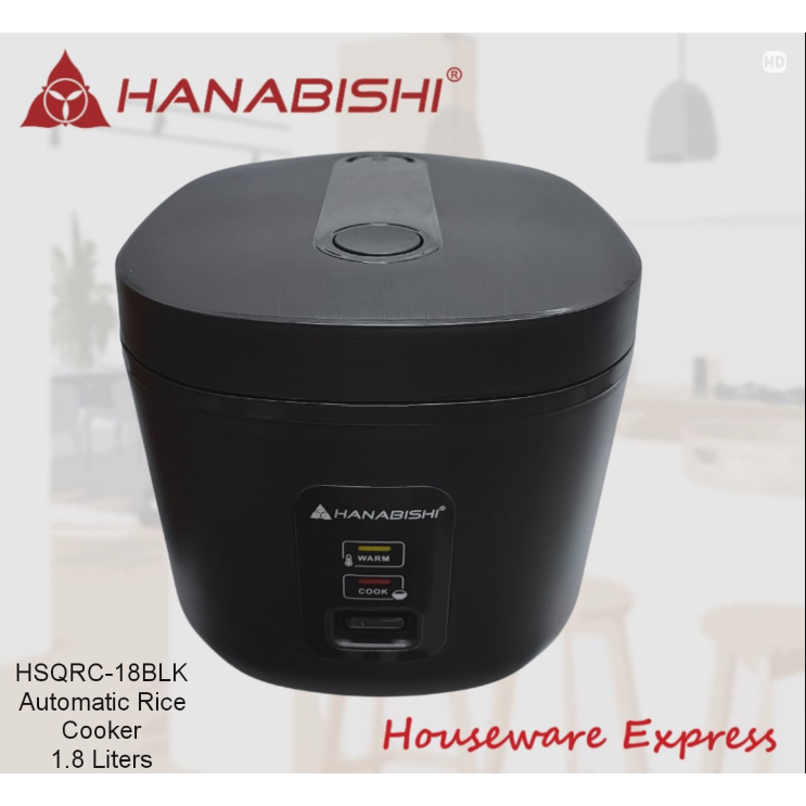 Hanabishi HSQRC-18BLK Rice Cooker 1.8 Liter/10 cups Square Jar Type (Houseware Express)