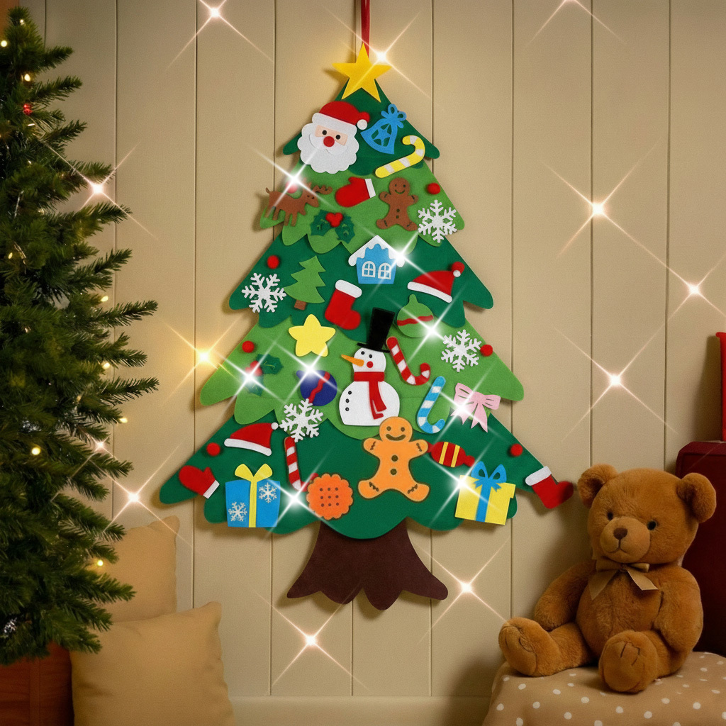[Gift Free Lamp] Felt Christmas Tree DIY Wall-mounted Christmas tree children's Christmas Decoration