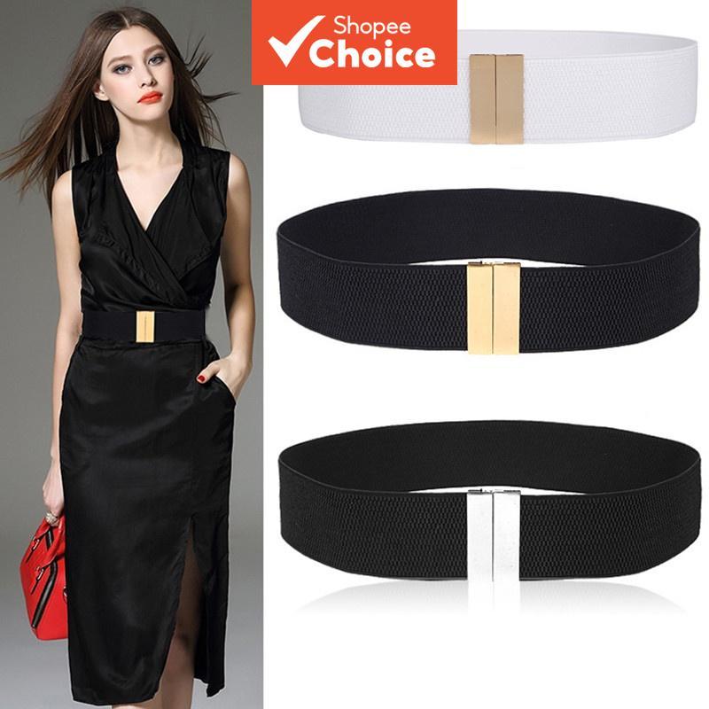 Wide Elastic Corset Belt - Adjustable Metal Buckle & Stretch Lightweight Waistband for Dresses/Skirts